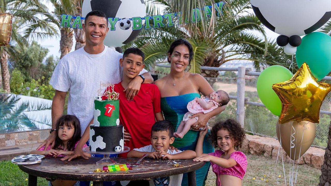 Родные, близкие друзья и двухъярусный торт в черно-зеленых цветах, украшенный футбольными мячами и красной футболкой с цифрой 7, игровым номером папы. Вот и все, что нужно Криштиану-младшему для счастья.