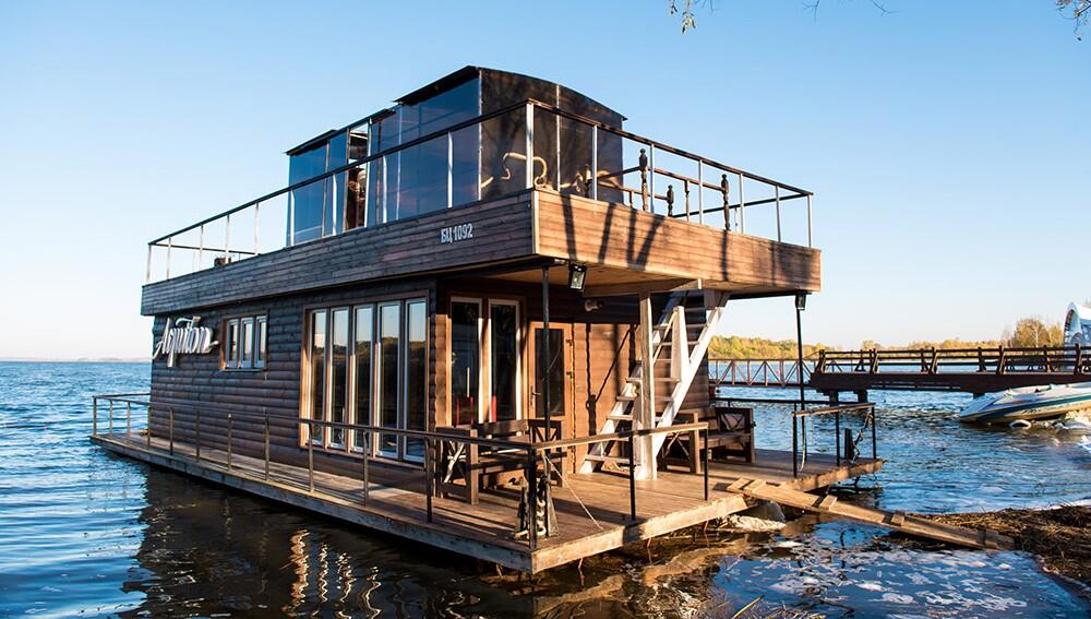 Если хотите новых эмоций и впечатлений, то стоит обратить внимание на данный вариант. Aquilon ‒ это плавучий дом с баней на Минском море. Здесь точно получится отдохнуть в уединении и расслабиться на природе, даже несмотря на то, что скоро придет зима. Попасть сюда можно круглосуточно, а единовременно дом примет до 15 человек.