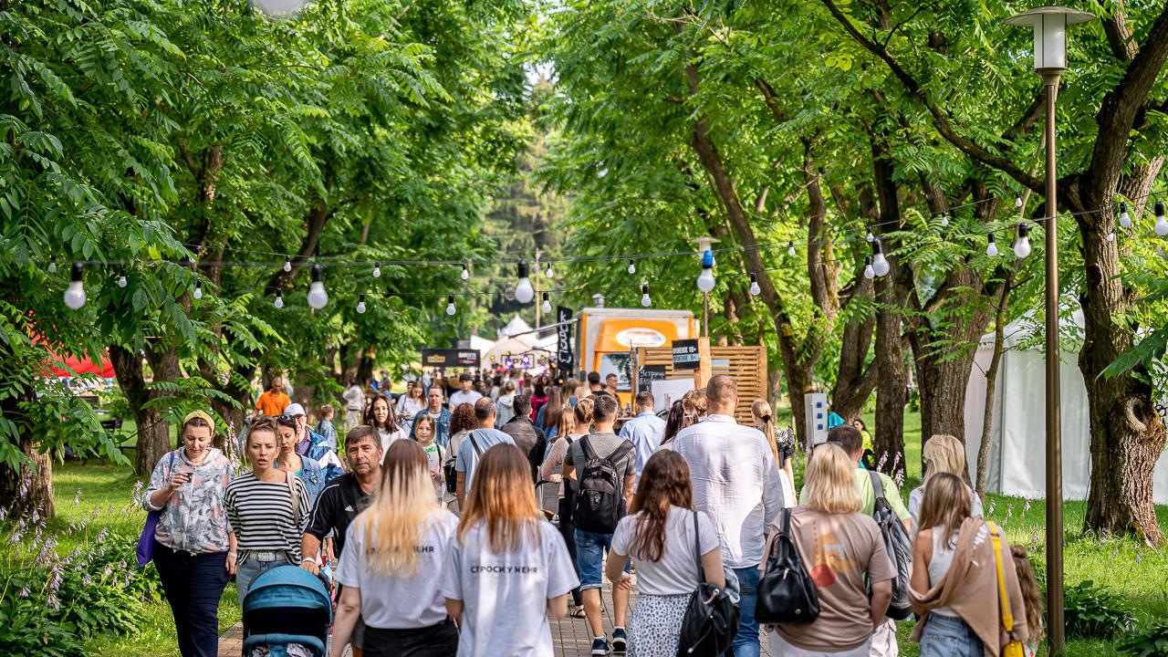 Попадаем через главный вход в Ботанический сад и дальше интуитивно идем на звук и запах. Аромат еды, которую на главной аллее готовят в фуд-траках, ощущается сразу. Поэтому многие решают на старте сделать привал, перекусить и уже потом отдыхать на полную катушку.