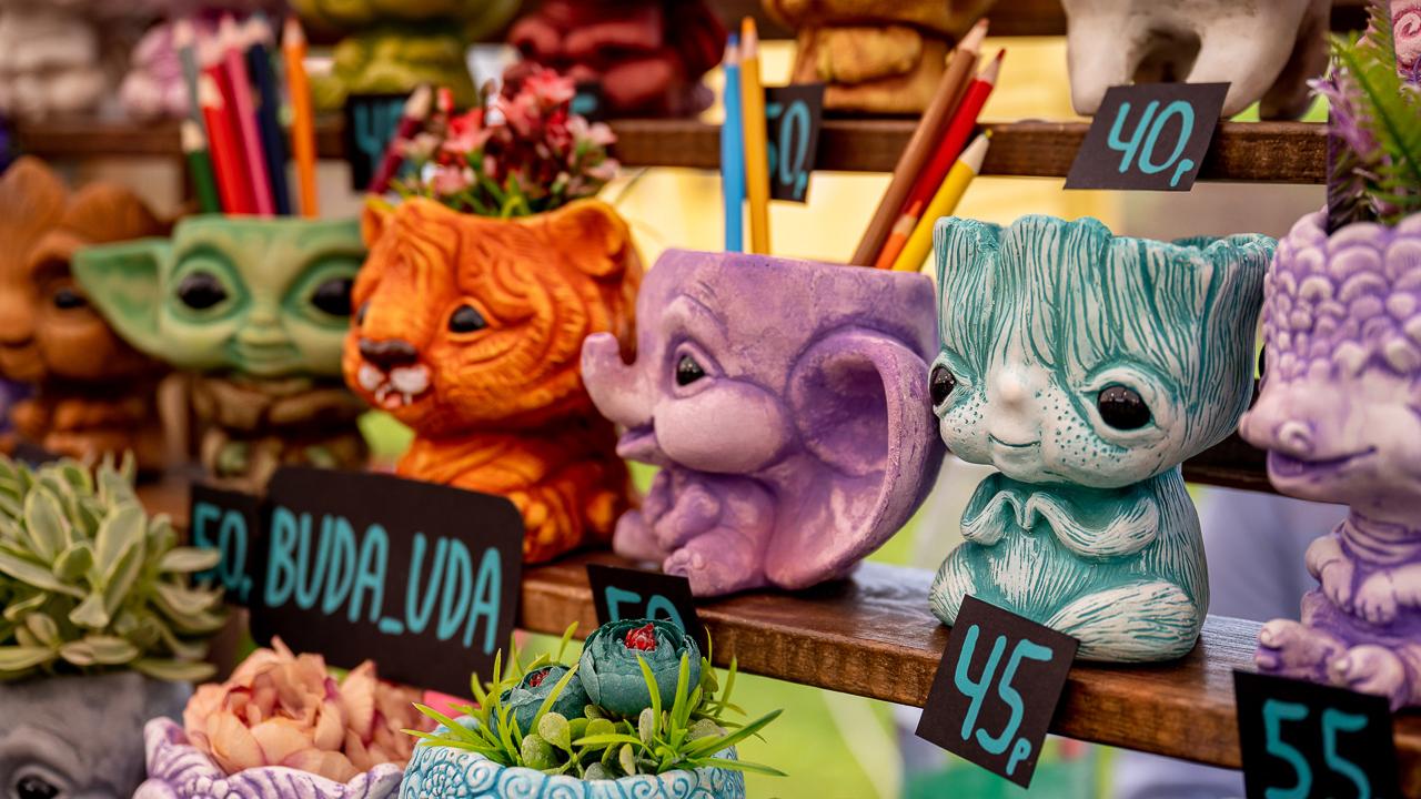 Мы поговорили с Ольгой, которая на Vulitsa Ezha представляет семейную мастерскую Buda Uda. Вместе с мужем ремесленница уже больше 10 лет занимается кукольным направлением. Последние 2 года пара начала создавать кашпо из структурного гипса многофункционального назначения. Главная фишка – это кашпо с изображениями героев из известных фильмов и мультиков. Людям очень нравится: