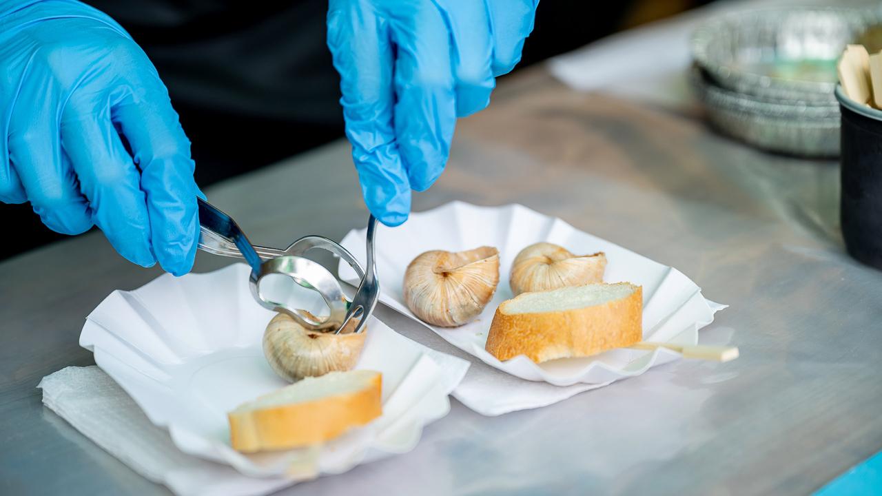 Улиток выращивают на улиточной ферме Ratov, а пирог из них приготовили в пекарне «ПапаПёк». Новинку можно было попробовать за 9 рублей. Продавцы рассказывают, что на улиточный киш люди реагируют очень хорошо, в отличие от самих улиток: