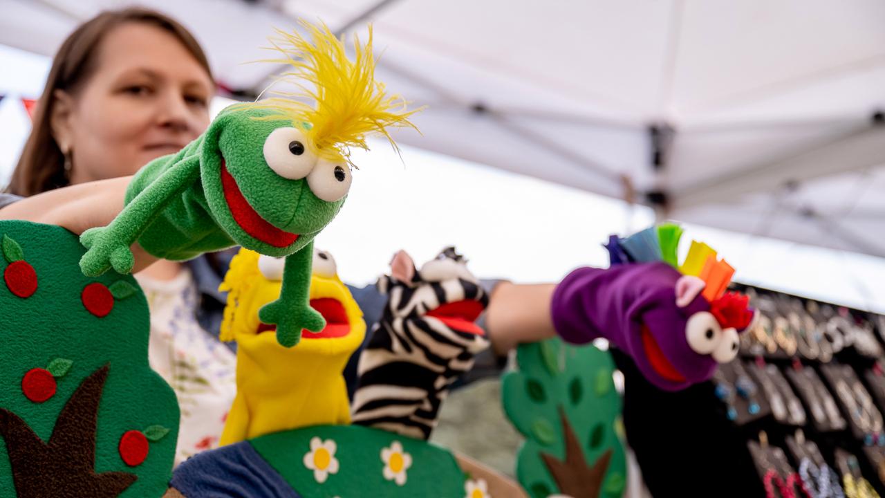 Другая ремесленница, Полина, со своими улыбающимися квакушками и другими зверушками приехала на Vulitsa Ezha из Витебска. Она шьет игрушки уже 9 лет. На фестиваль свои работы привозит второй год подряд. На вопрос «Как идет торговля?» отвечает: