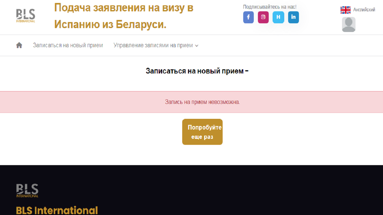 Самостоятельная подача документов на шенгенскую визу, как и год назад, напоминает квест. Поймать слот в визовом центре – редкая удача. Например, можно потратить не менее получаса, чтобы заполнить онлайн-анкету для визового центра Испании в Беларуси, но в итоге увидеть надпись, что запись на прием невозможна.