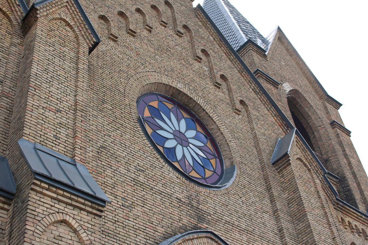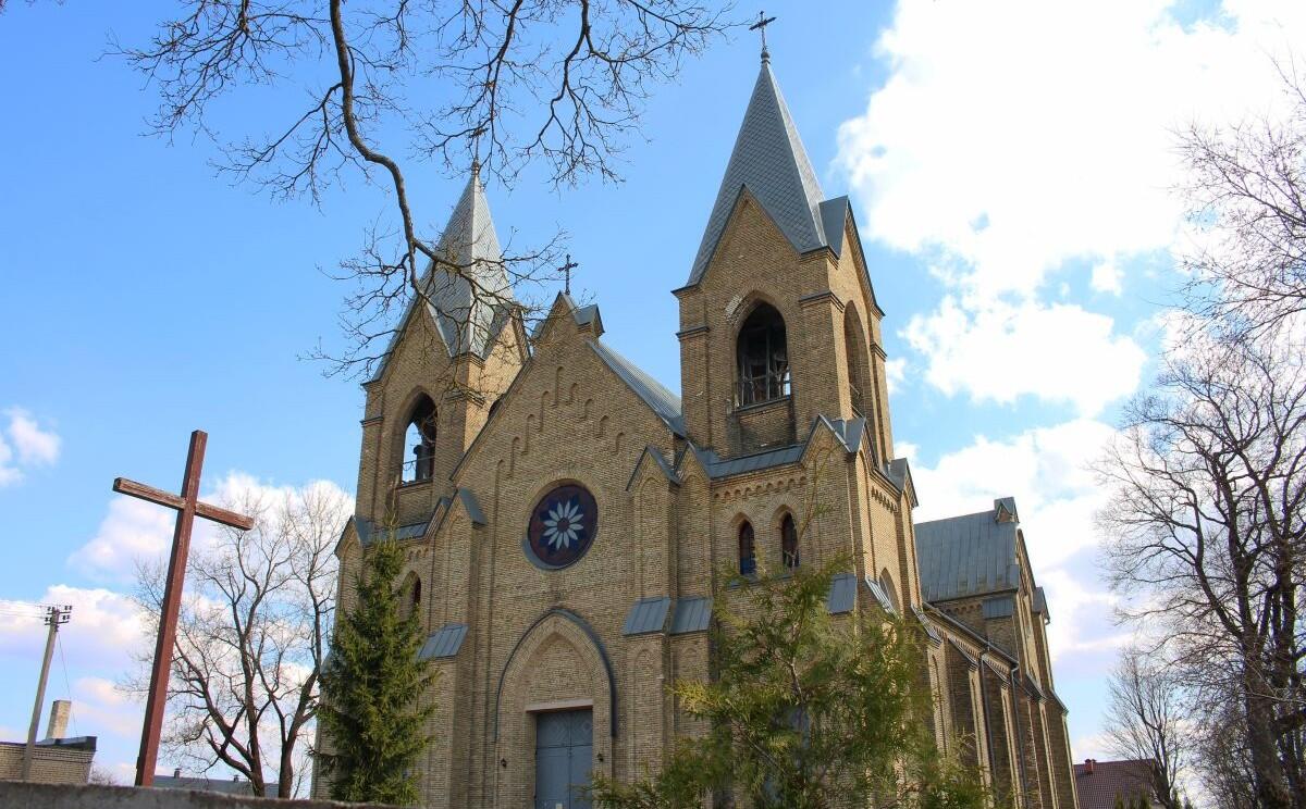 Здание из желтого кирпича расположилось на берегу Ислочи. Готическая постройка напоминает картинку из американского фильма. Очарование строгому замку придают и витражные окна-розы. Вблизи храма находятся развалины бывшей почтовой станции. Кроме того, неподалеку установлен памятник в виде ствола дерева с обрубленными ветвями. Он символизирует утраченные во времена холокоста жизни.