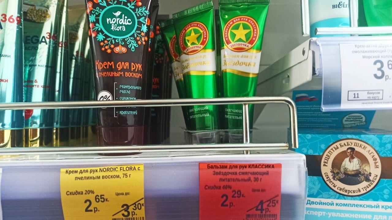 Ну и куда же без косметики. Например, зубную пасту можно купить за 5,23 вместо 6,54 рубля; краску для волос – за 7,09 вместо 14,39 рубля.