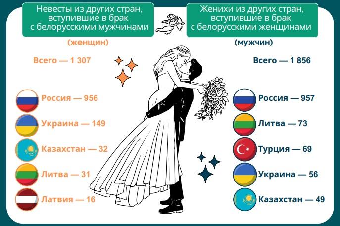 Также Белстат представил статистику браков с иностранцами: первое место занимают женихи и невесты из России.