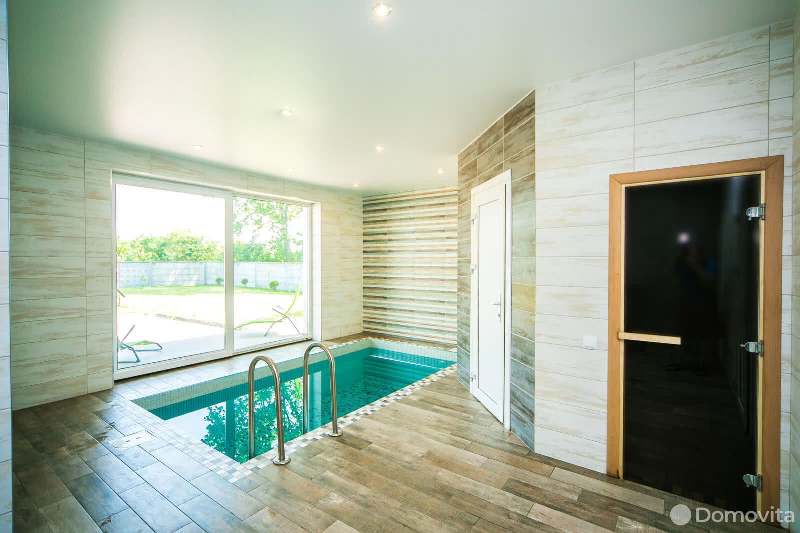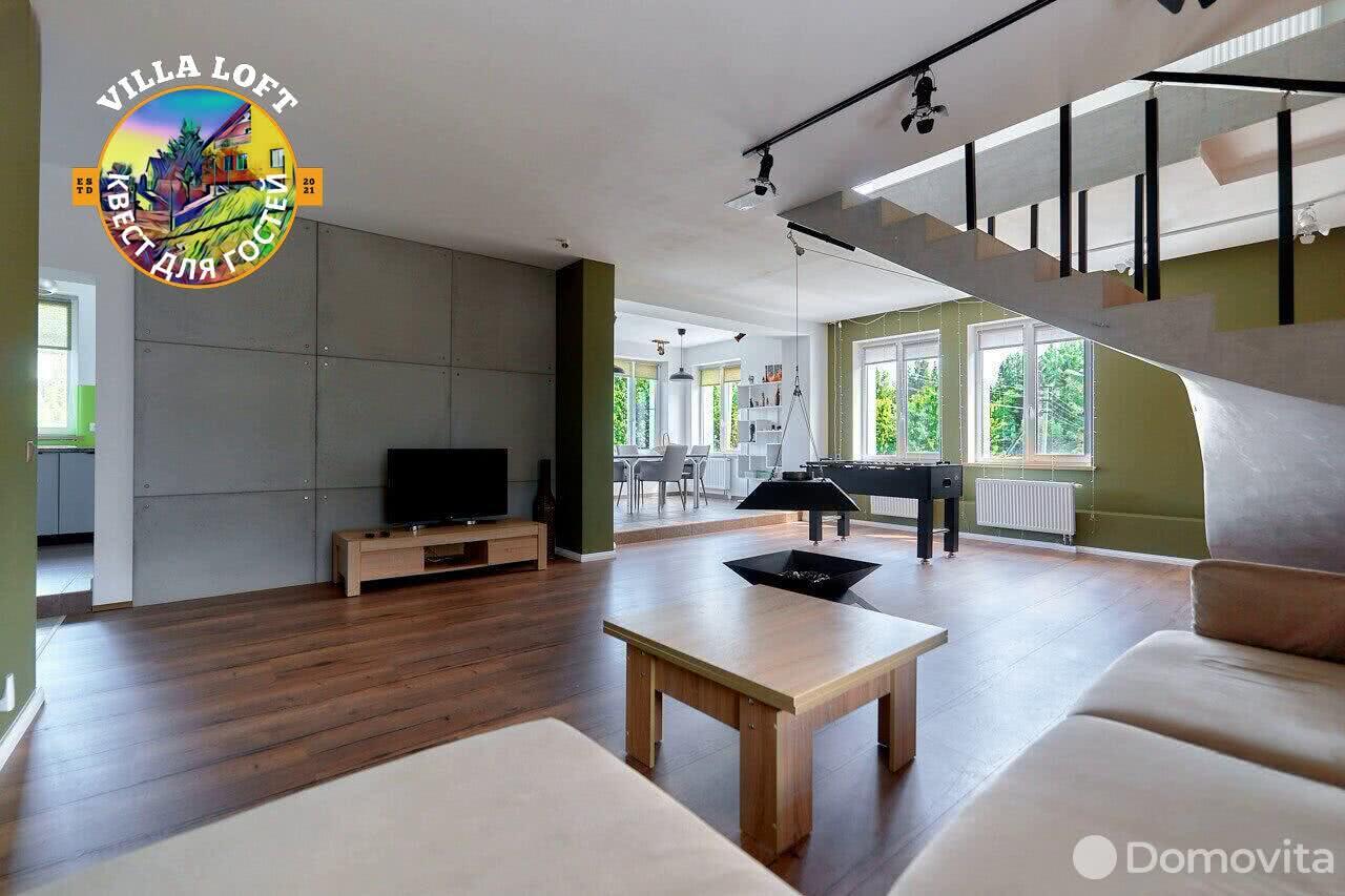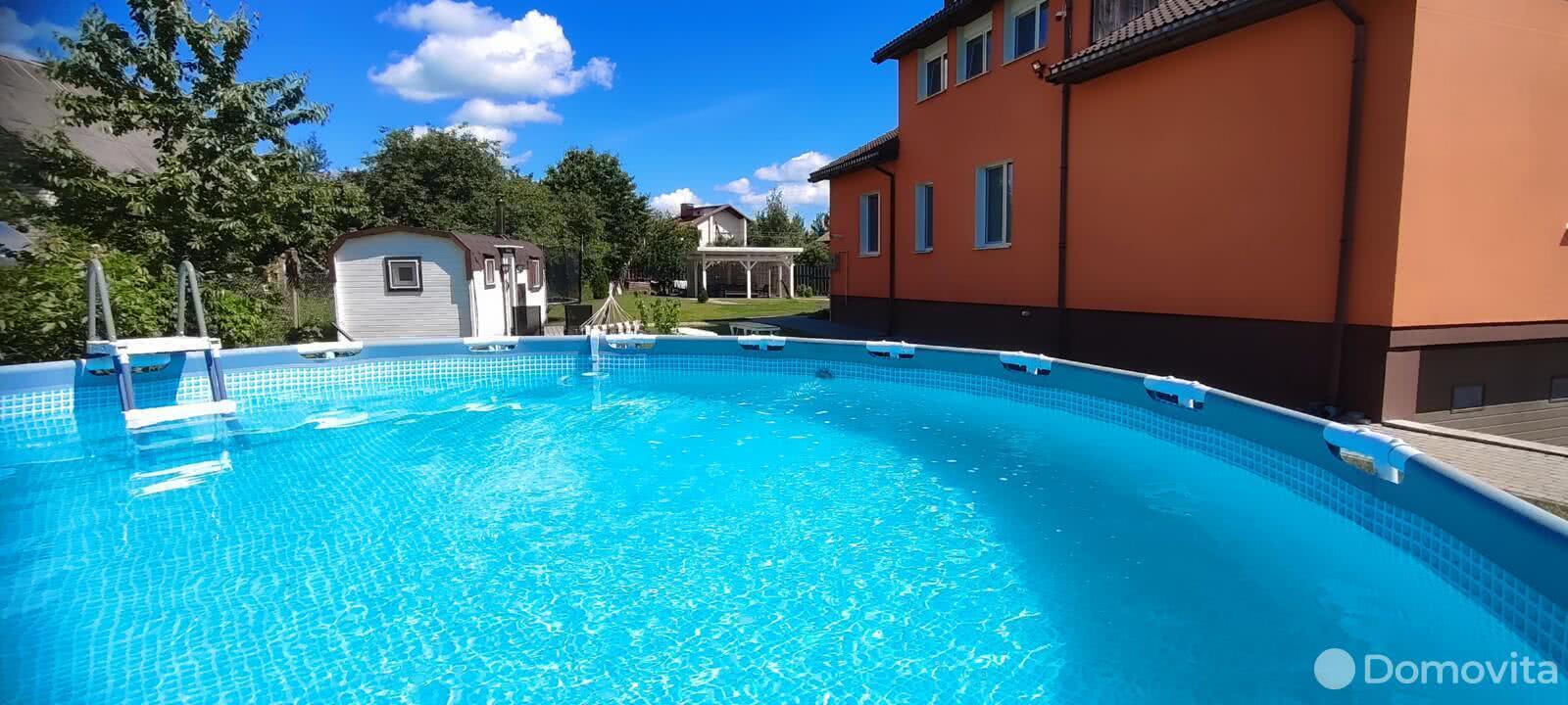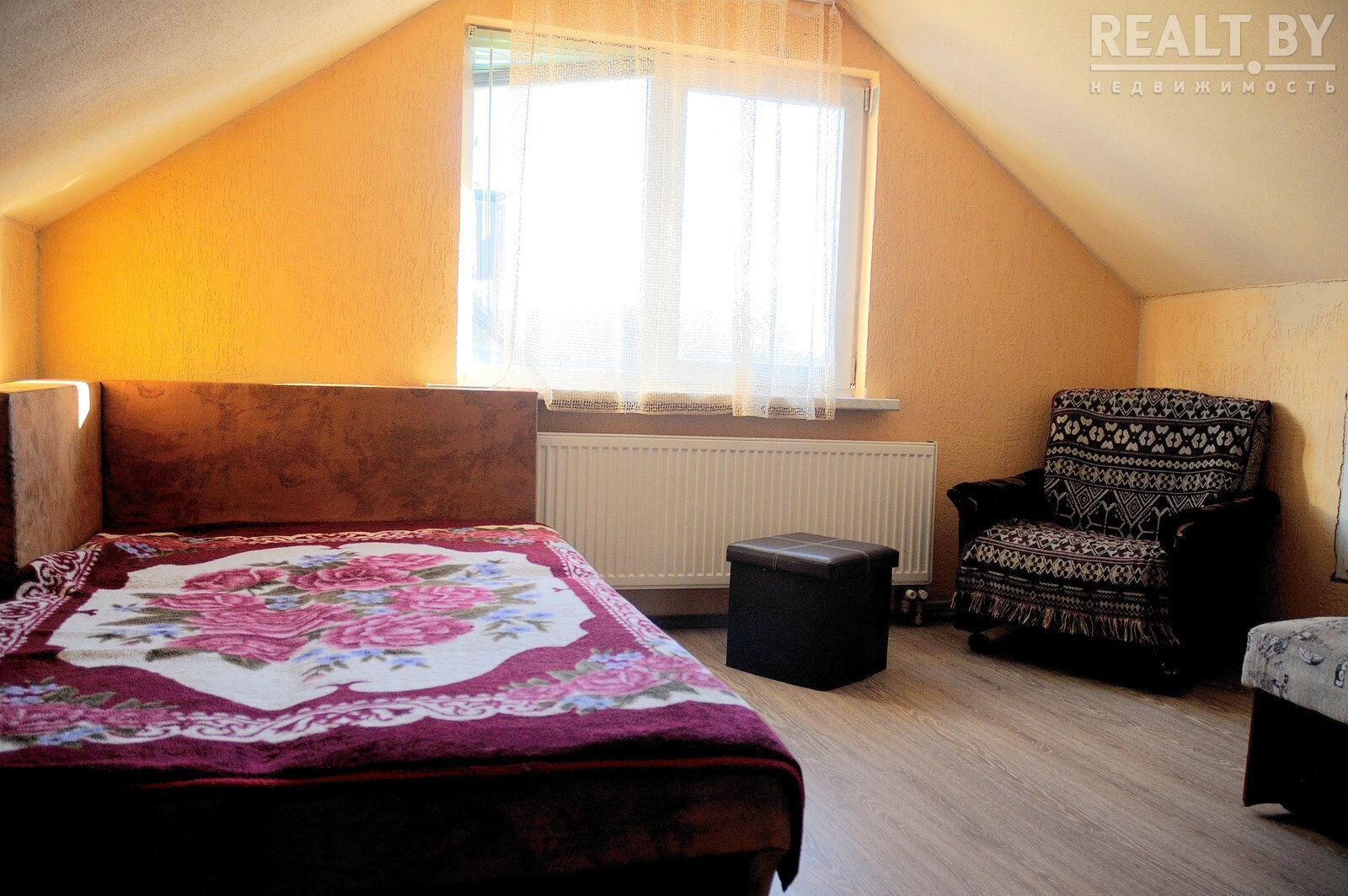 Двухэтажный коттедж с удобствами можно найти всего в 10 км от Минска. Дом просторный, его площадь составляет 200 кв. м. Комфортно расположиться здесь смогут до 19 гостей. Конечно же, есть и небольшой бассейн для приятного летнего отдыха.