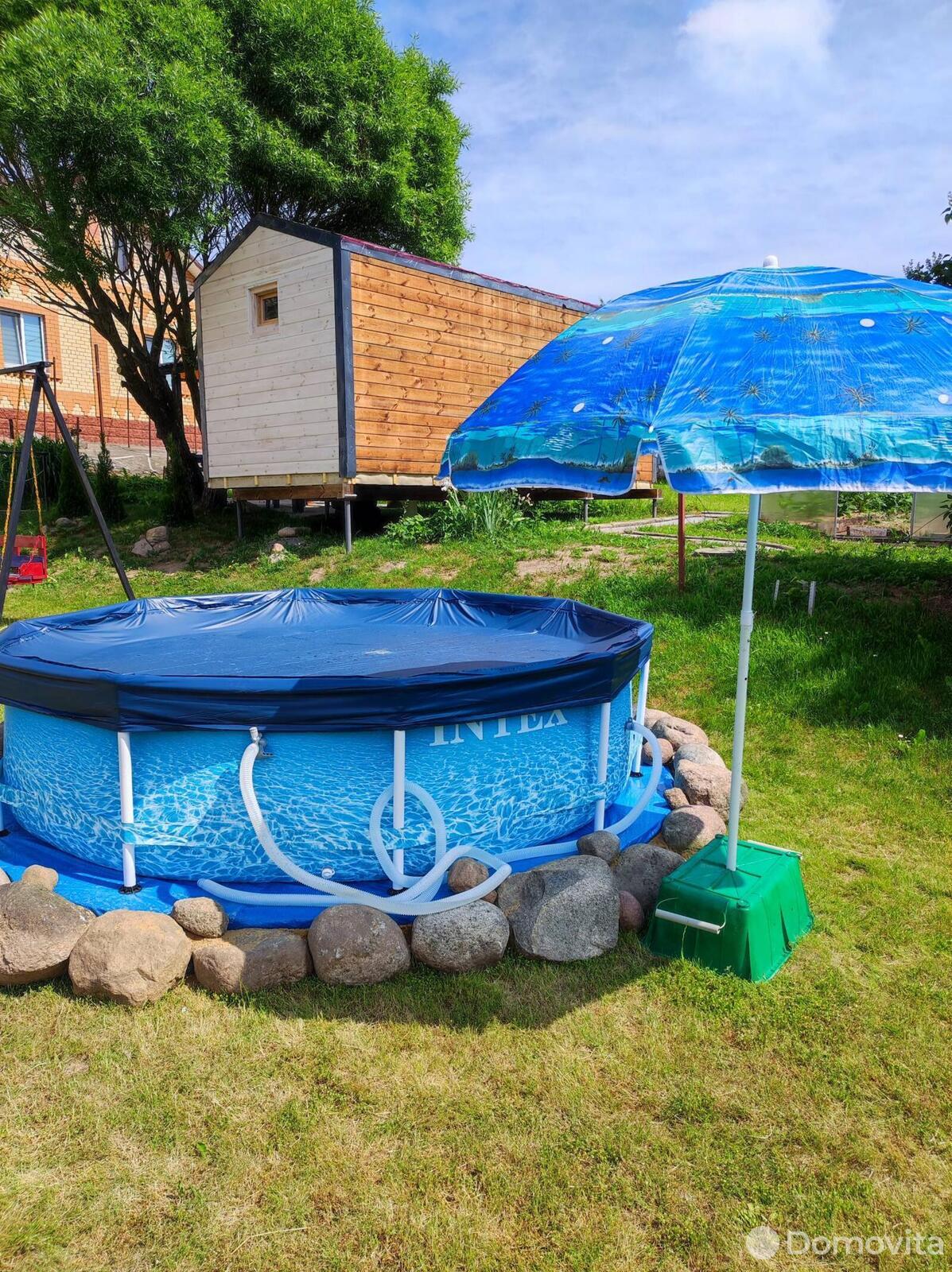 На летний период здесь устанавливается каркасный бассейн, в котором можно освежиться в жаркие летние дни. Есть и оборудованная зона барбекю со всеми необходимыми принадлежностями, детский батут, настольные игры, гамак и лежак, интернет.