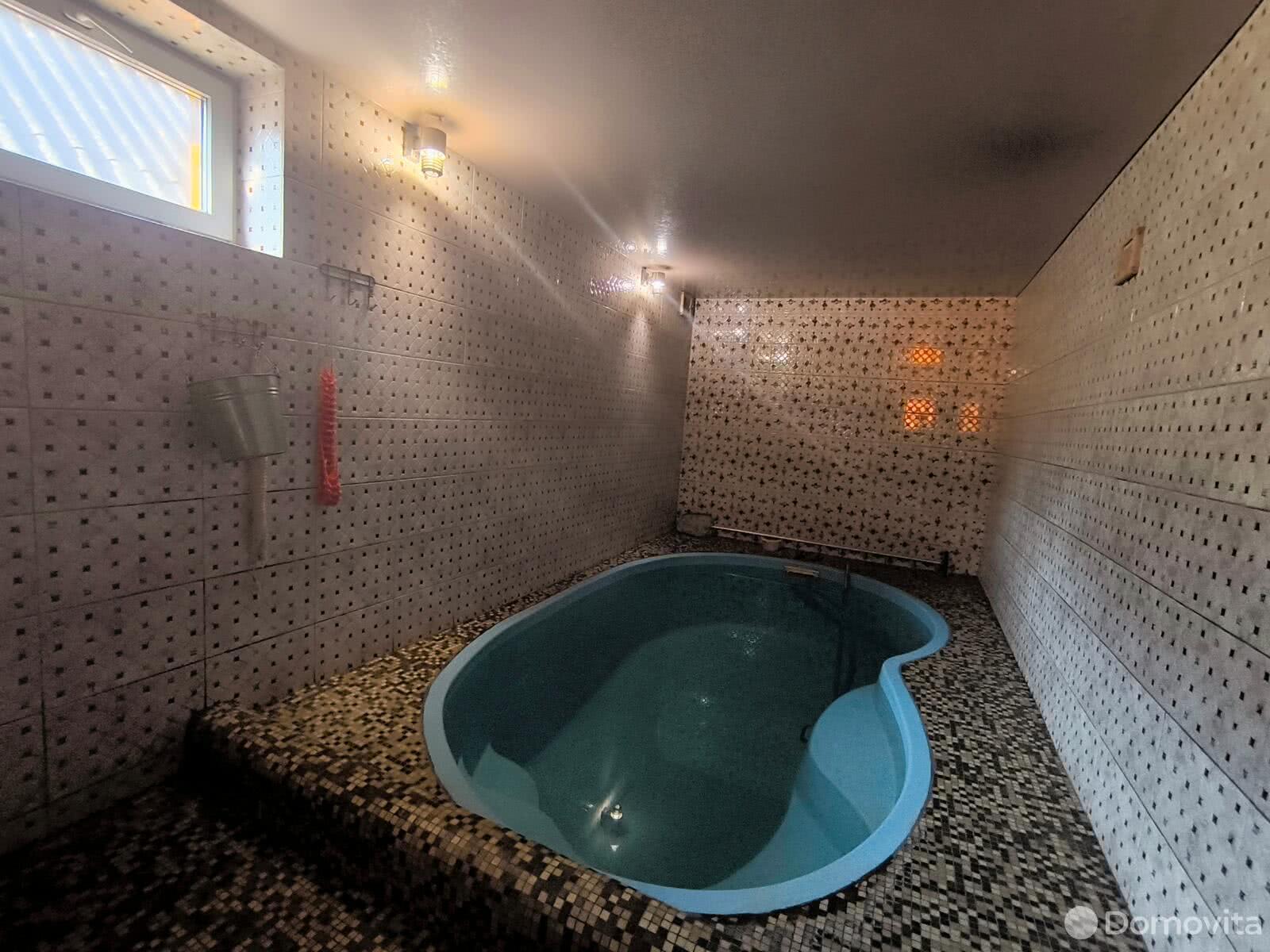 Важное преимущество коттеджа — большой банный комплекс с двумя бассейнами, горкой в бассейн и джакузи (отметим, что посещение уже включено в стоимость). Цена указана за 2-4 человек, для компаний она будет выше.