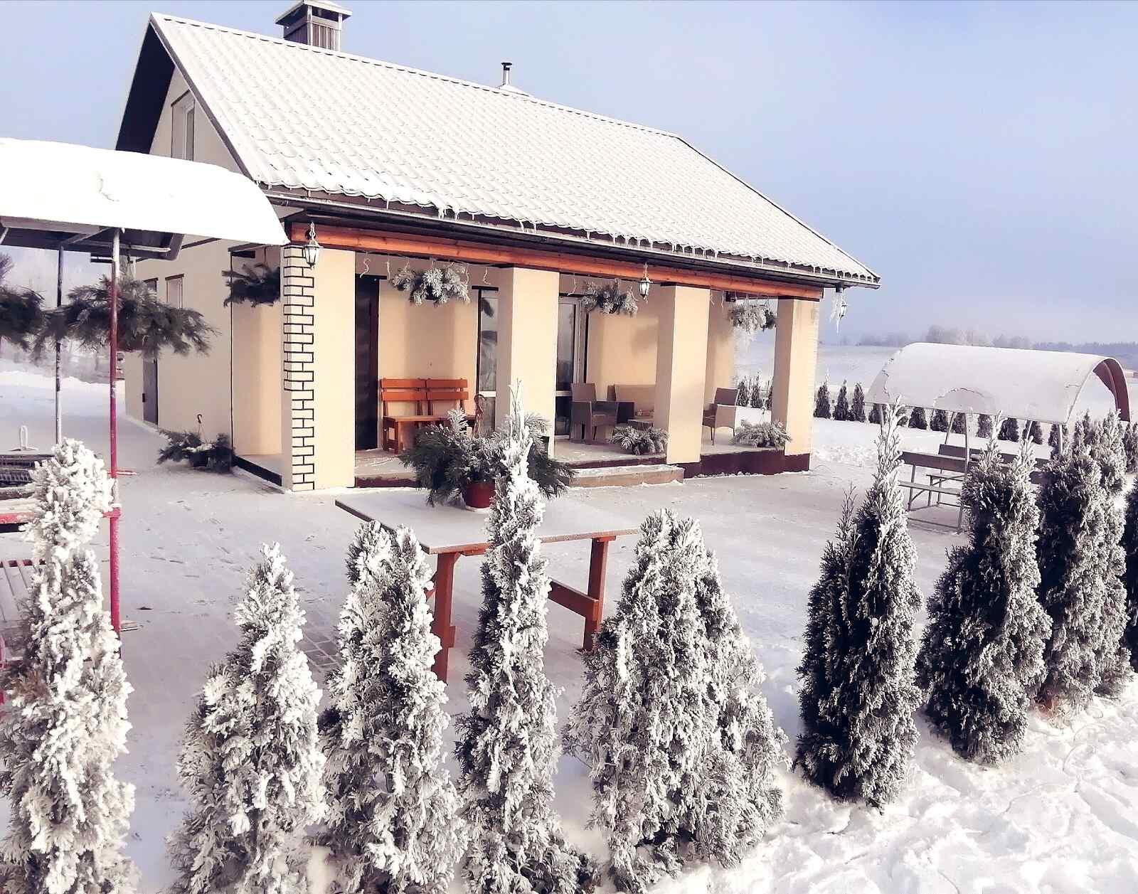 Если есть возможность проехать 25 километров от Минска, можно снять 5-комнатный коттедж недалеко от горнолыжного курорта Силичи. В коттедже 15 спальных мест, а на улице есть детская площадка, барбекю, открытый бассейн. Особенность коттеджа в том, что гости могут заказать питание из продуктов сельского подворья. Так, завтрак обойдется в 35 рублей на человека, обед – в 45 рублей, а ужин – в 35 рублей. Можно также заказать блюда для банкета. В таком случае стоимость составит от 120 рублей на человека.
