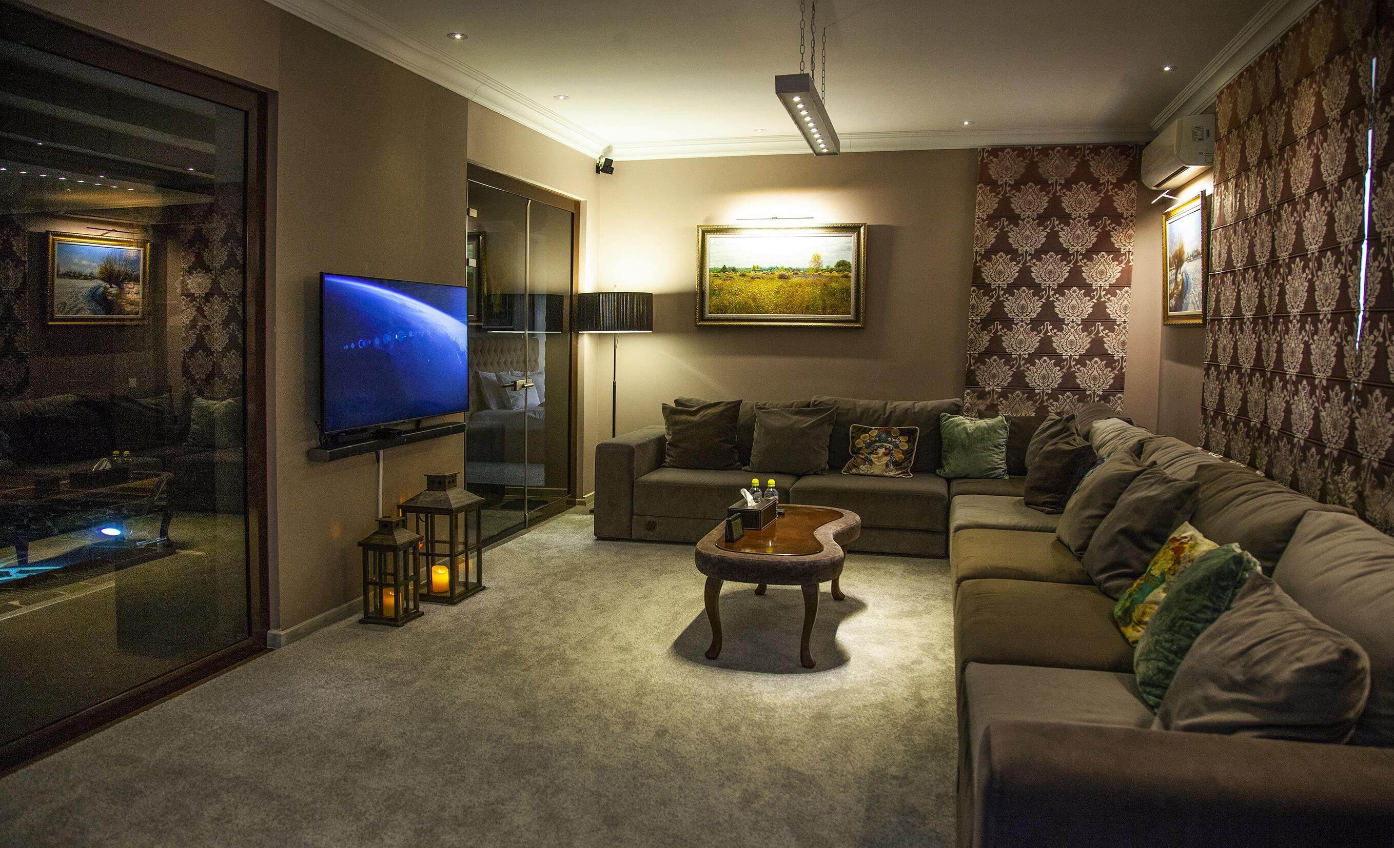На вилле есть роскошные удобства для отличного отдыха: кондиционер, wi-fi, спутниковое телевидение, а также крытый бассейн, хаммам, площадка для мини-футбола и другие сюрпризы для гостей.