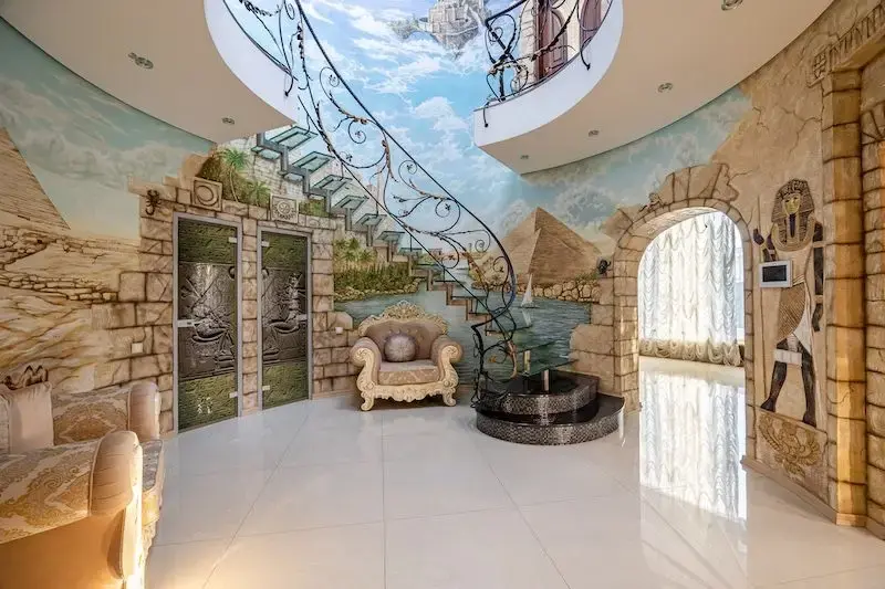 В Минске на улице Папернянской, д. 9, сдается просторный коттедж «Египетский дом». В коттедже есть всё для отдыха: диско-зал с барной стойкой, оборудованная кухня, большие душевые и ванные комнаты, 8 спальных мест, уютная комната с большим телевизором и другие удобства. Площадь коттеджа составляет 229 квадратных метров, он рассчитан на торжества до 30 человек. Коттедж «Египетский дом» расположен недалеко от Цнянского водохранилища, рядом с лесом.