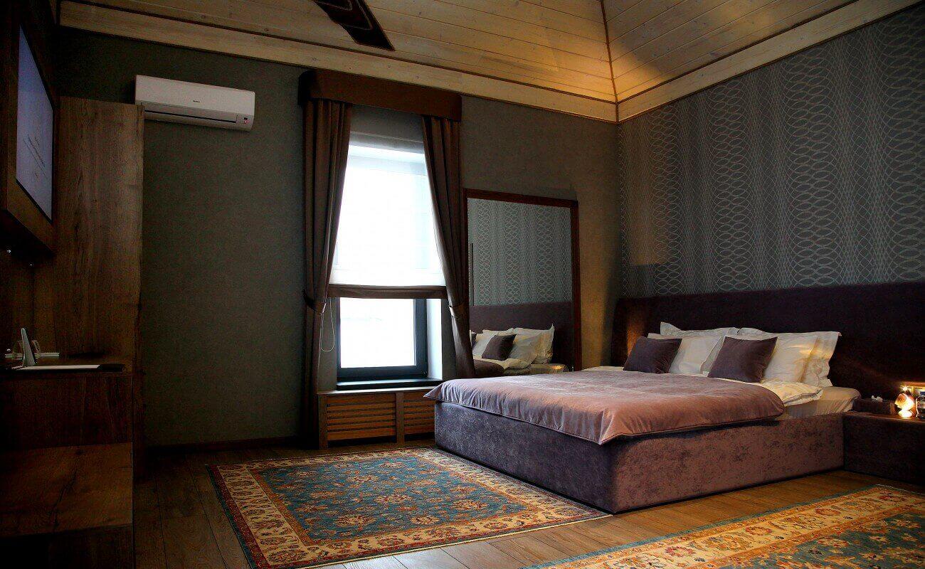 На вилле расположены 3 ванные комнаты, оборудованная кухня с кофемашиной, 4 спальные комнаты, просторная гостиная. Для гостей также функционируют крытый бассейн, турецкий хаммам и сауна.