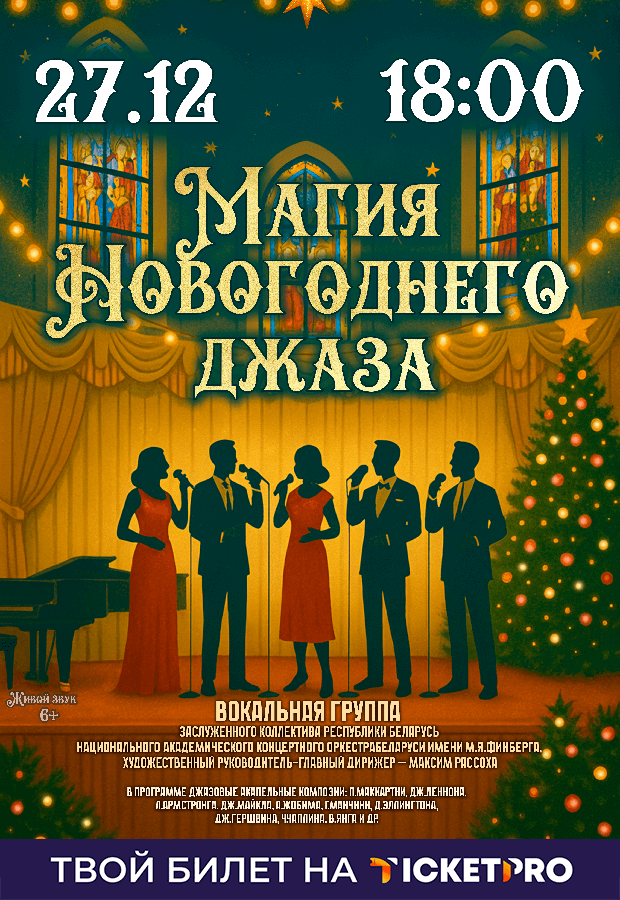 Еще один концерт, который поможет почувствовать новогоднюю атмосферу. Ценители джаза — это мероприятие для вас! В программе мероприятия — акапельные композиции Маккартни, Леннона, Армстронга, Майкла и многих других известных исполнителей.