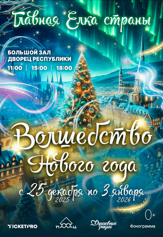 Семейное мероприятие по традиции пройдет во «Дворец Республики». Новогодняя сказка подарим гостям праздничное настроение с песнями, танцами и захватывающими играми.