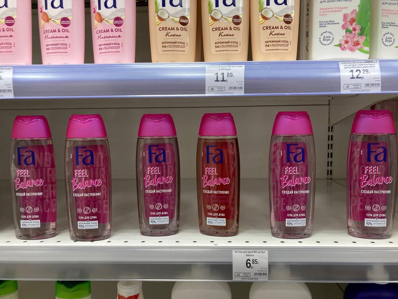 Шампуни и душ-гели – по штуке в ряд, и выбор крайне скудный. На мужском стеллаже тоже затейливое чередование российского и турецкого брендов, чтобы скрыть пустующие полки.