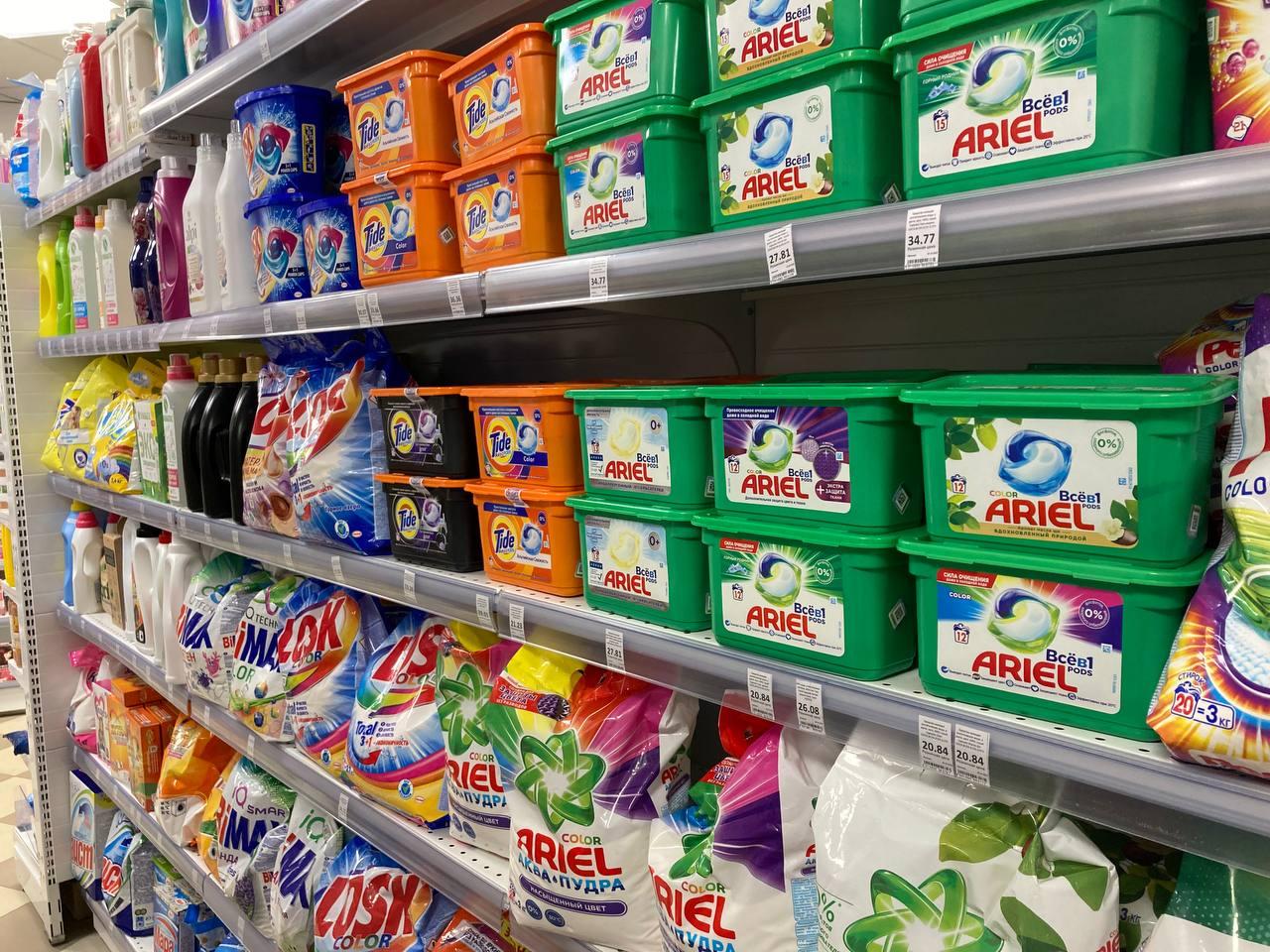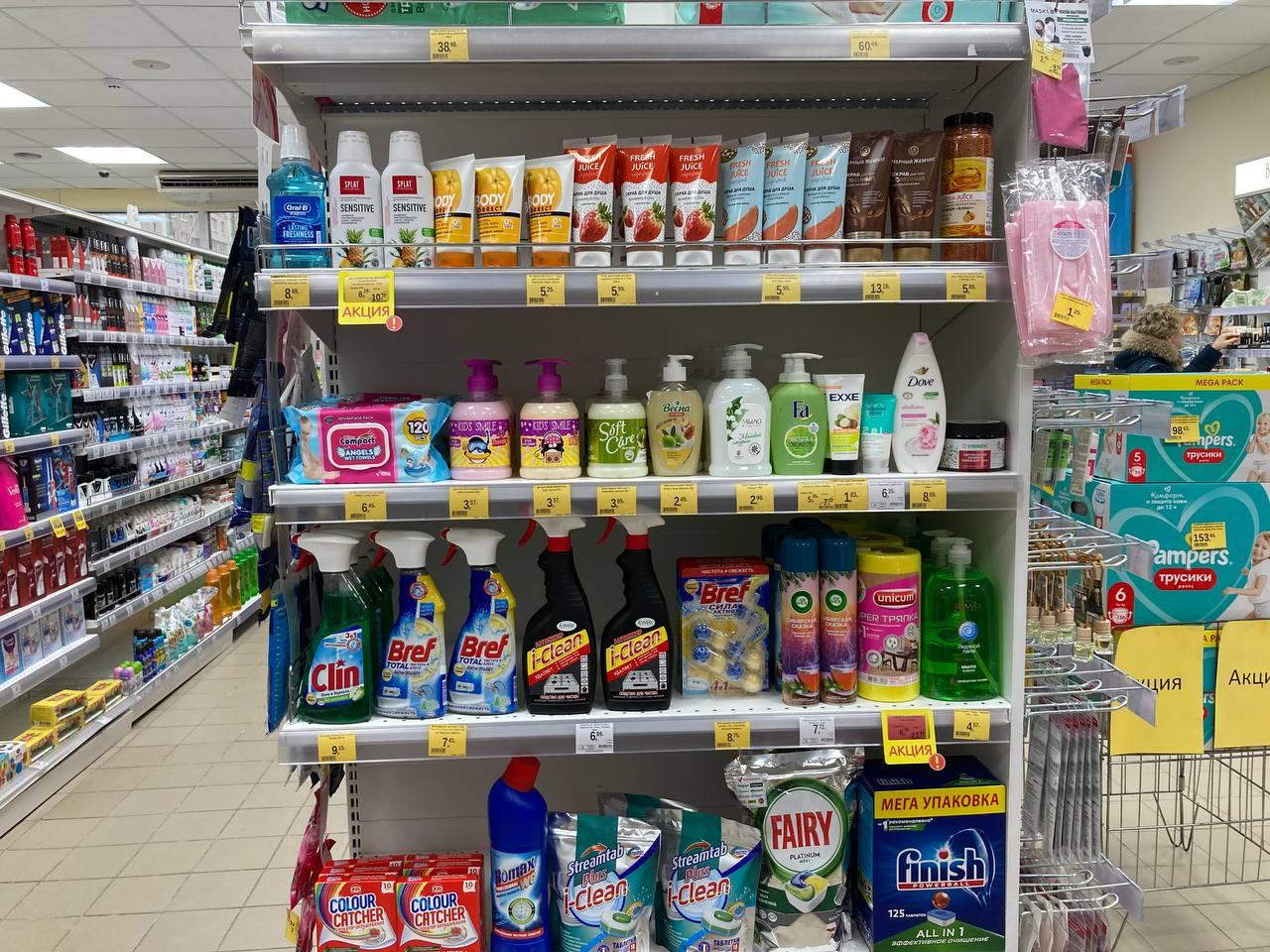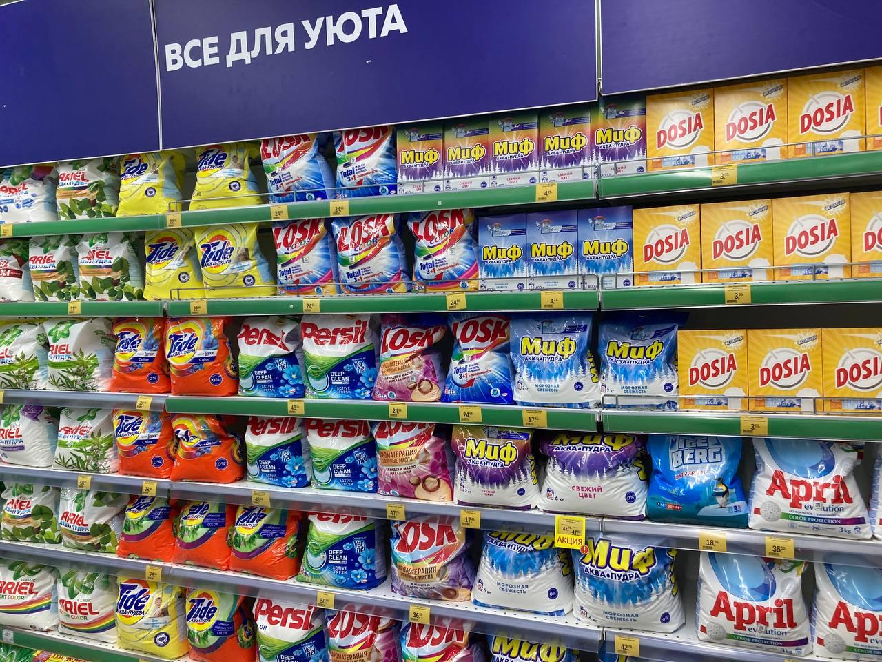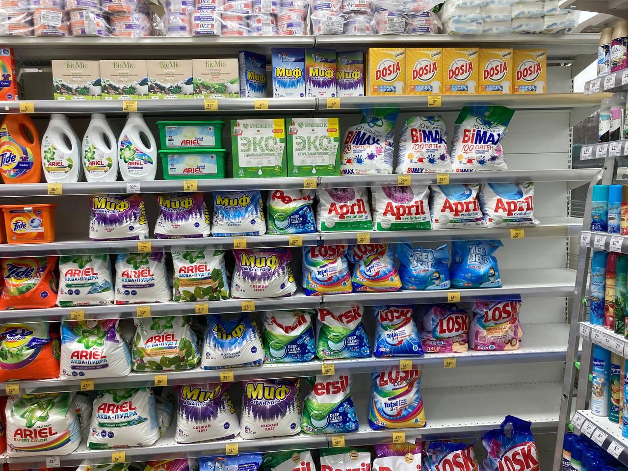 Ассортимент других товаров тоже отличается от привычного. Например, среди стиральных порошков не было популярных BiMax и «Мары», в дезодорантах бесполезно искать твердый Old Spice.