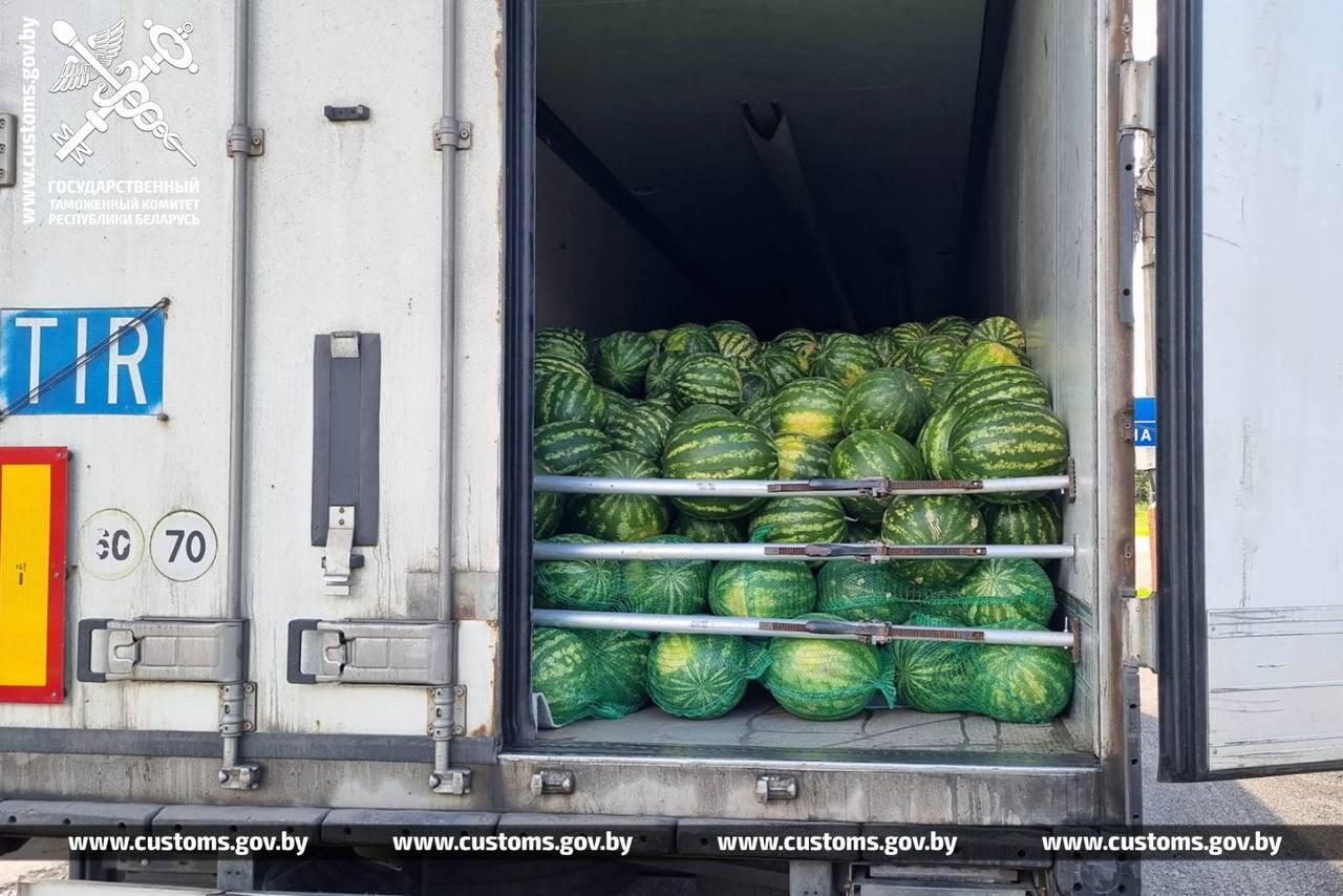 Параллельно на другом участке границы гомельские таможенники задержали грузовик с 20 тоннами арбузов, которые ввозились на территорию Беларуси из России с нарушением установленного порядка. Стоимость незадекларированного груза составила 25 тыс. рублей.