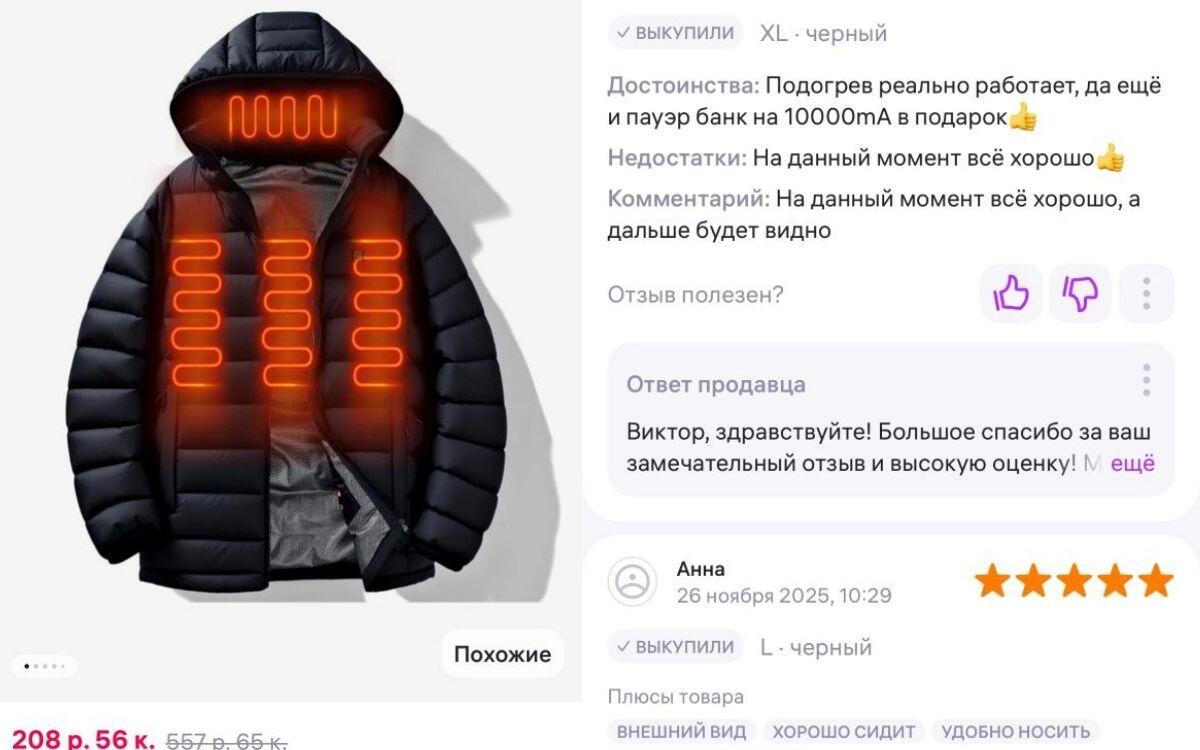 Оказывается, включать в розетку для дополнительного тепла можно не только обогреватель. Куртка с подогревом за 208,56 рубля обещает согреть даже в минус 35. На модель оставили 22 отзыва, также есть запросы на большие размеры. Видимо, на такую высокотехнологичную покупку решаются редко. Жилет с встроенным USB-нагревателем за 78,17 работает также от пауэрбанка. По заявлению продавца, одежду можно стирать в машинке. Товар имеет всего шесть оценок, но все положительные. Термоноски с подогревом за 87,72 могут работать до двух часов без подзарядки. В карточке товара сказано, что аксессуар разогревается до 45 градусов всего за 6 минут. Носки имеют высокий рейтинг – 4,7. Подойдут для похода в горы, езды на мотоцикле и охоты.