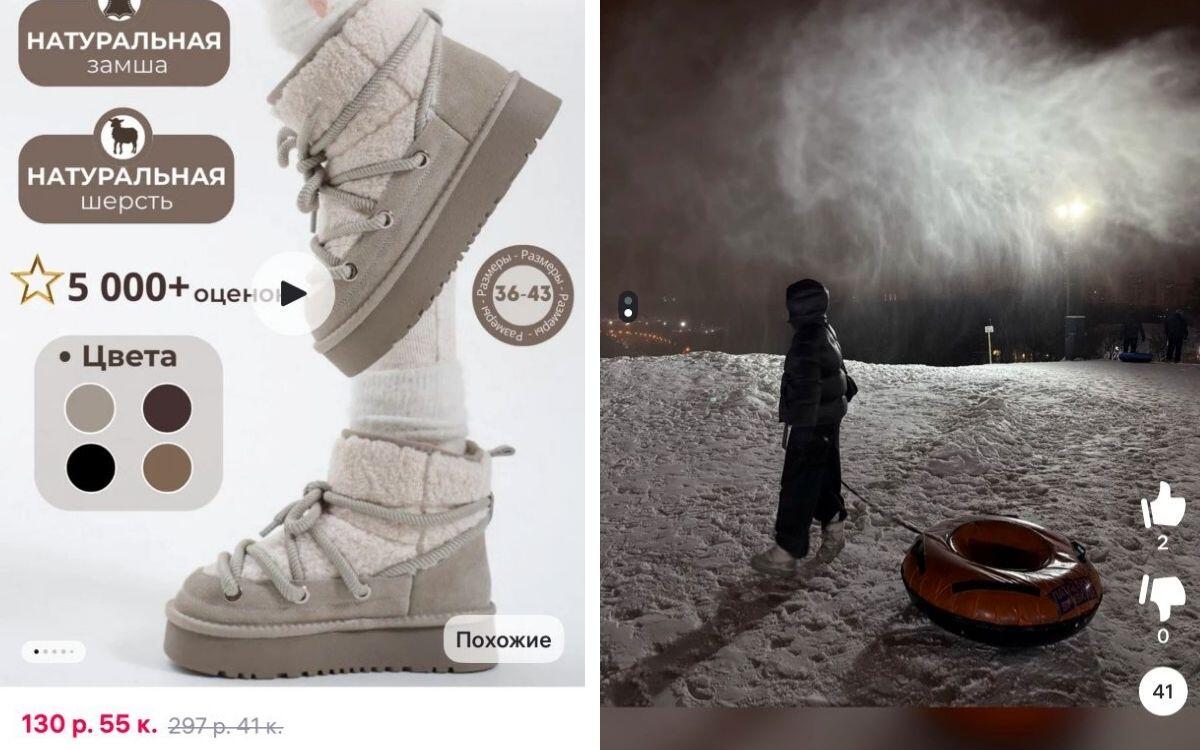 Держать ноги в тепле позволят трендовые луноходы. Космическая обувь отличается дутым верхом, который напоминает облачение астронавтов. У полусапожек высокая и легкая платформа, а внутри – теплый мех. Угги-луноходы за 130,55 руб. с рейтингом 4,9 рекомендуют в качестве идеальной обуви в мороз. Покупательницы выставляют фото и видео во время зимних развлечений.