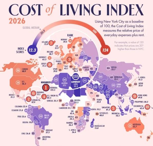 Названы самые дорогие для проживания государства (территории) в 2026 году.