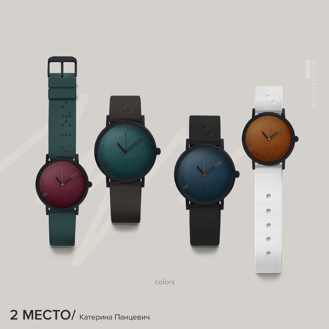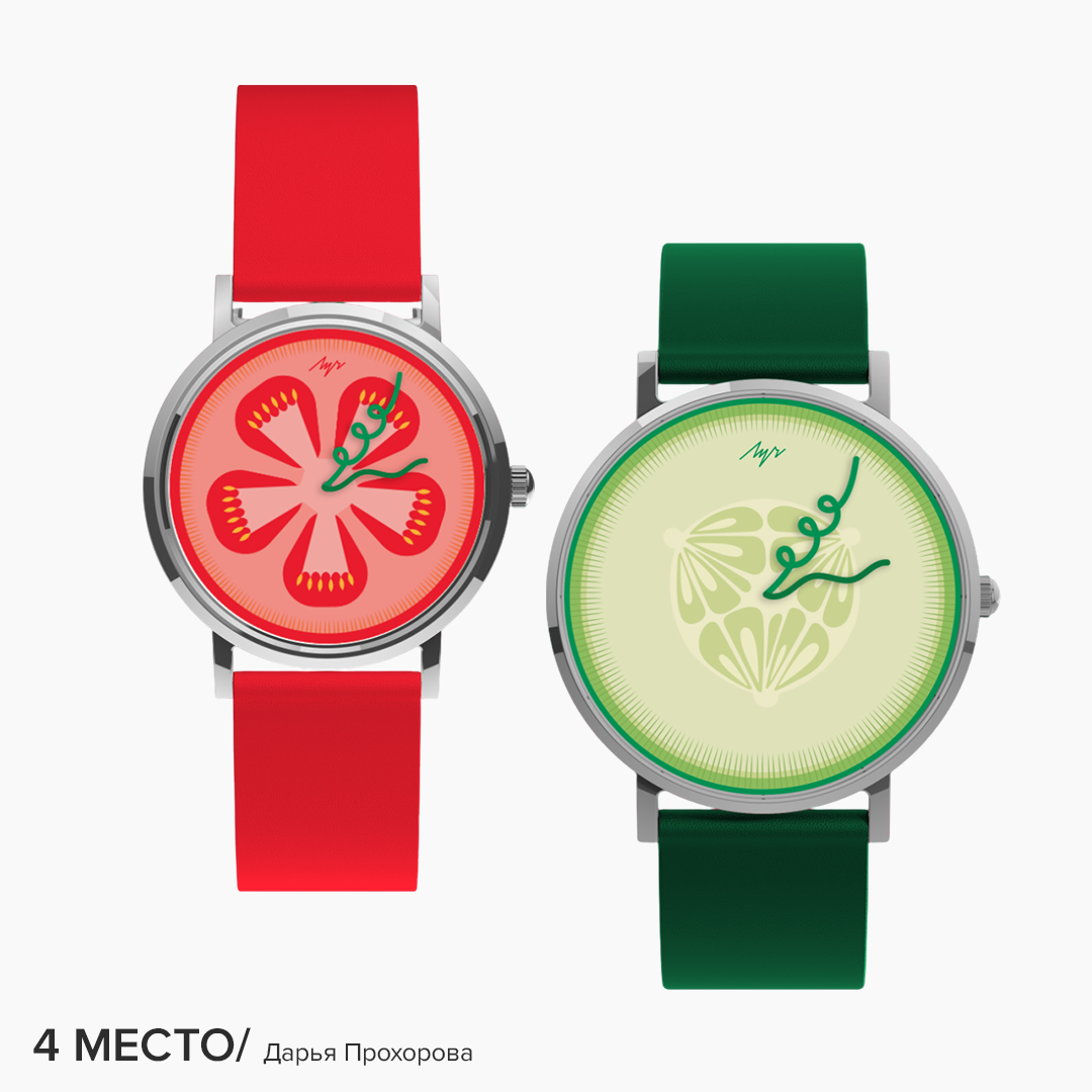 Всего же конкурс собрал сотни заявок со всей Беларуси. Второй место заняла Марина Матусевич со стильным сдержанным дизайном, а третье – Екатерина Панцевич с ярким модернистским рисунком на циферблате. Специальную награду получила Дарья Прохорова за концепцию часов в виде огурца и помидора.