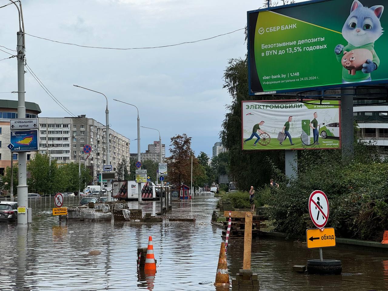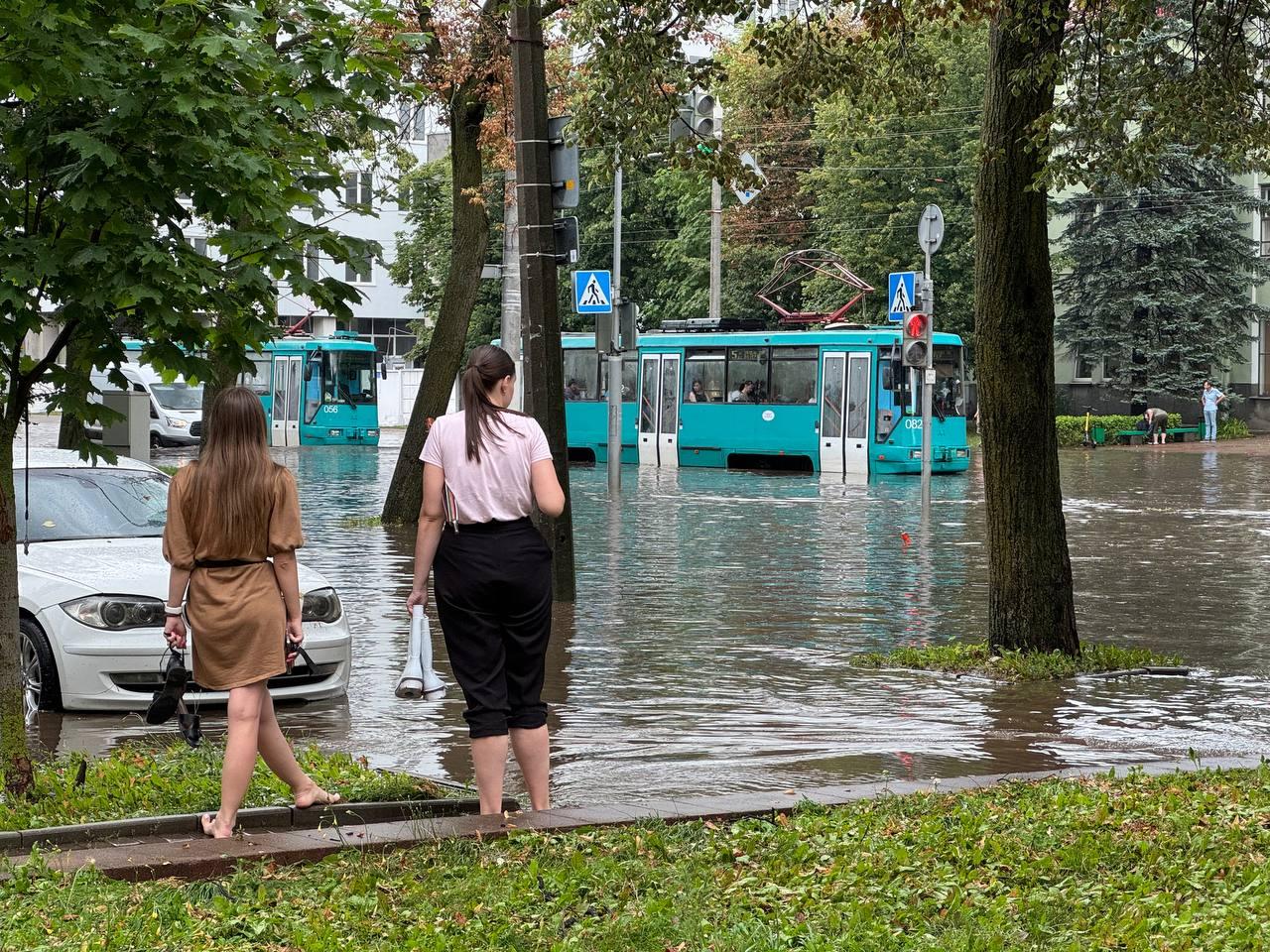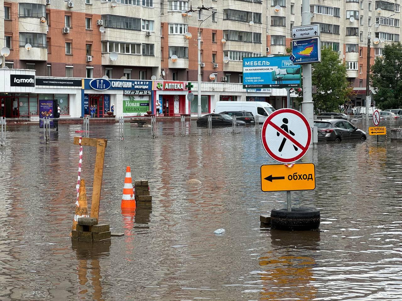 В МЧС Беларуси сообщили, что из-за обильных осадков в некоторых районах столицы фиксируются подтопления на следующих участках: