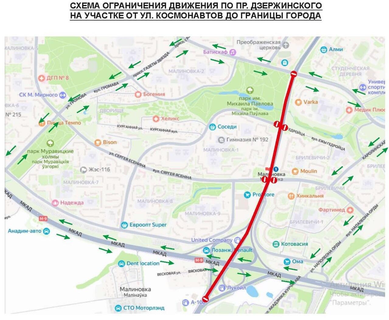 В связи с проведением работ по замене асфальтобетонного покрытия с 00:40 19 июля до 05:00 21 июля будет ограничено движение всех видов транспортных средств по проспекту Дзержинского на участке от улицы Космонавтов (включая перекресток) до границы города.