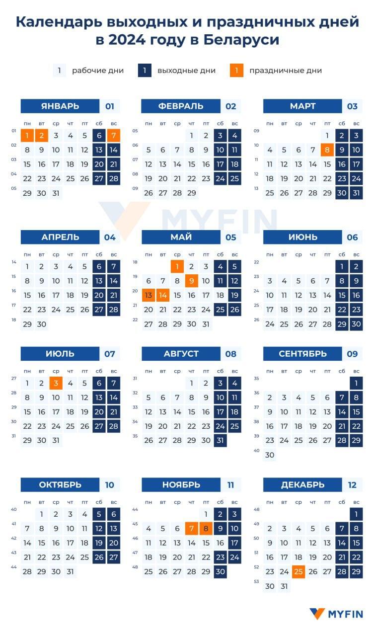 В соответствии с постановлением Совмина Беларусь №814 от 23 ноября 2023 года, утвердившим переносы рабочих дней в 2024 году, рабочий день с пятницы 8 ноября переносится на субботу 16 ноября.