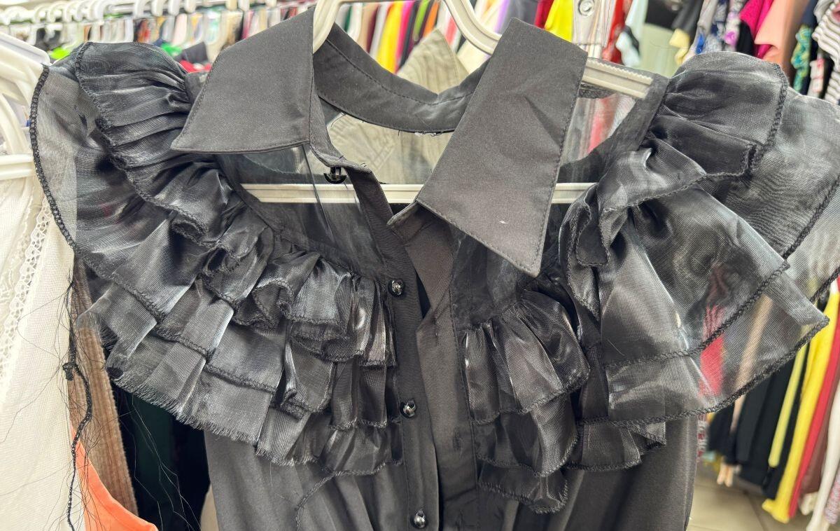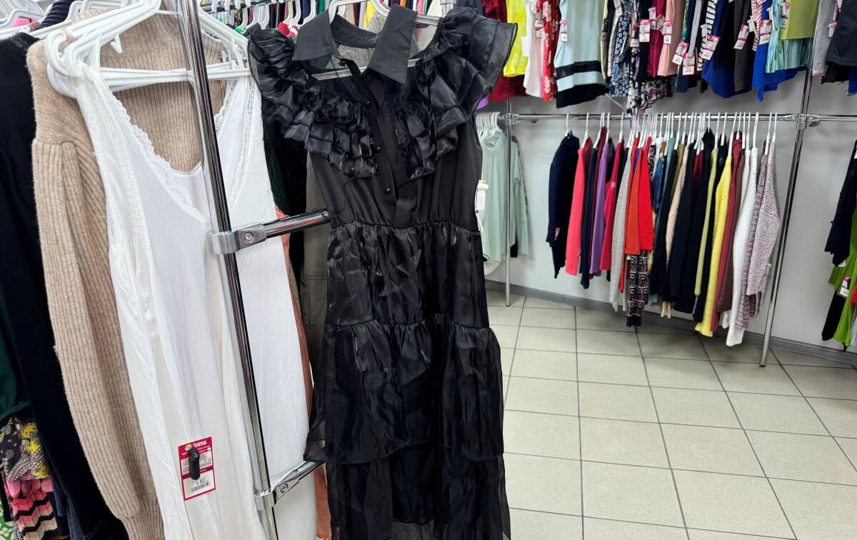 В некоторых других магазинах этой сети есть небольшие отделы с пометкой «Винтаж». Отправляемся по адресу проспект Независимости, 58, и опять попадаем на скидку, но уже 40 %. Место в центре города проходное, поэтому товара осталось немного. Из примечательных нарядов – черное платье в стиле главной героини сериала «Уэнсдей». Стоимость бального наряда от бренда Alaia из коллекции осень – зима 2021, в котором Дженна Ортега станцевала свой знаменитый танец, варьируется от 1 500 до 2 000 долларов. А в секонде черный наряд из шифона стоит всего 59,90 рубля.