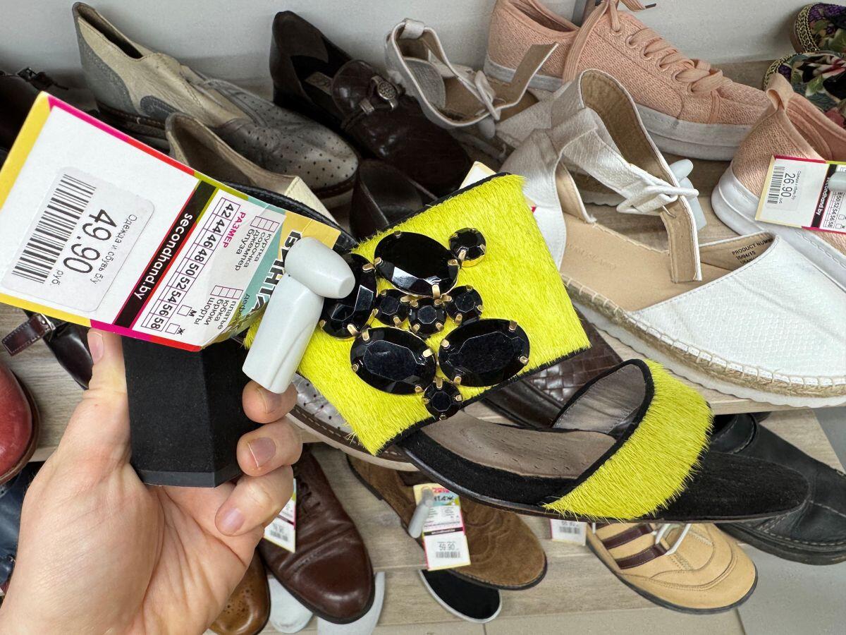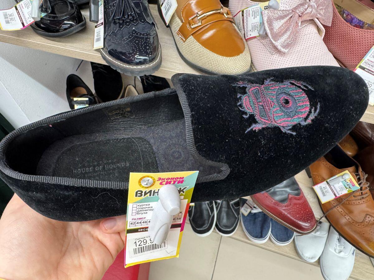 На полках также можно отыскать обувь из кожи и натуральной замши по цене от 50 до 130 рублей.
