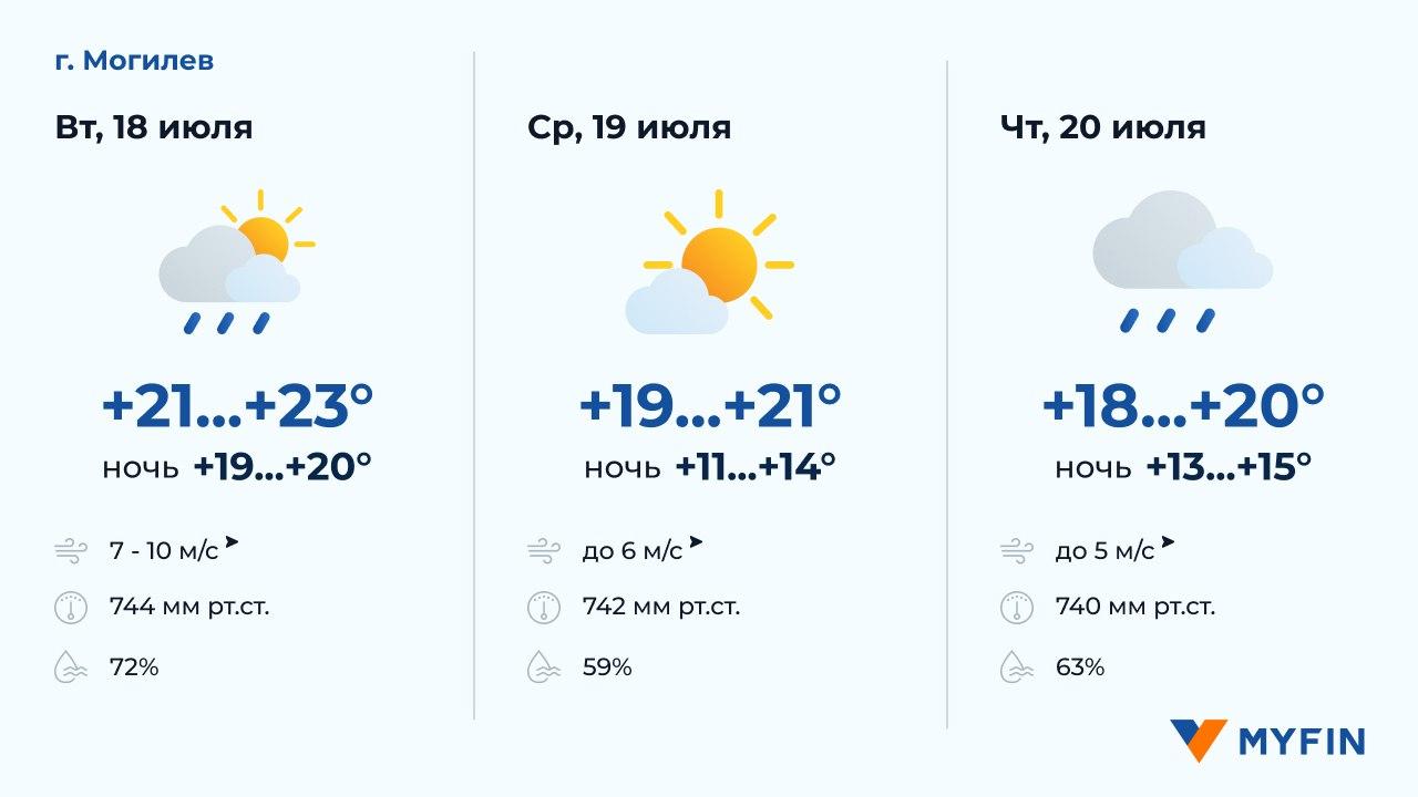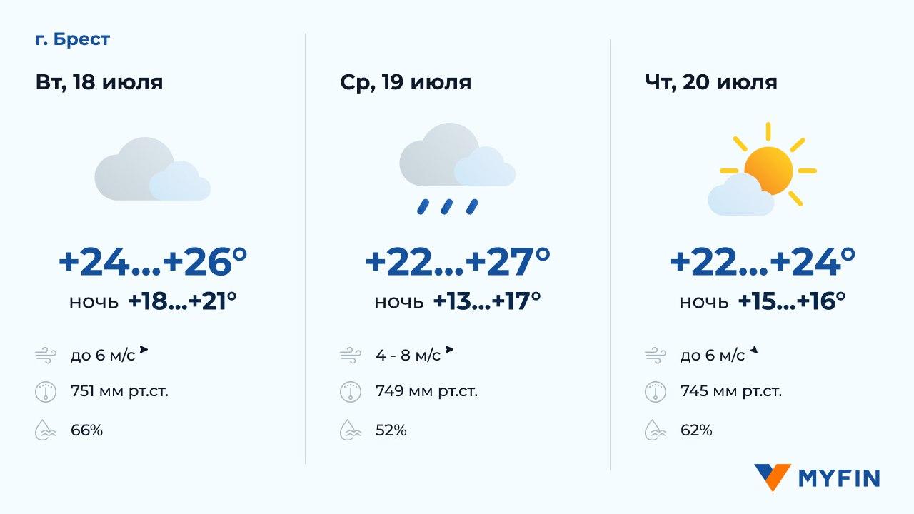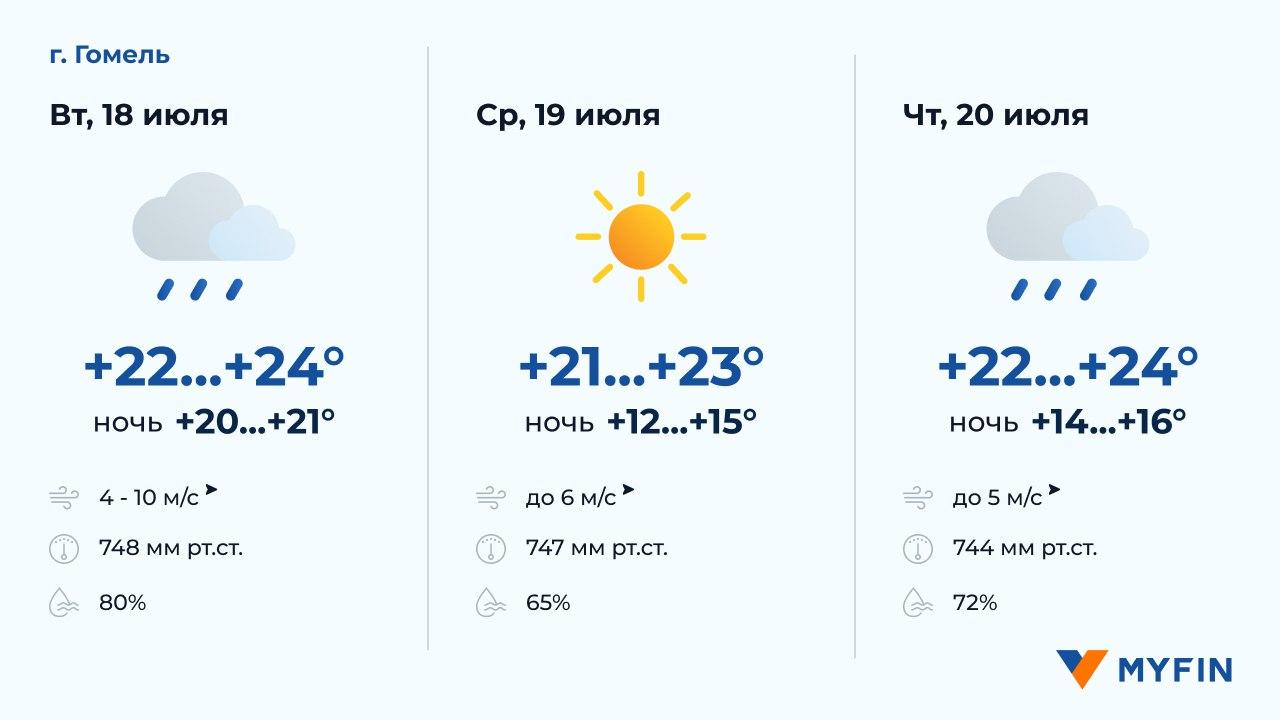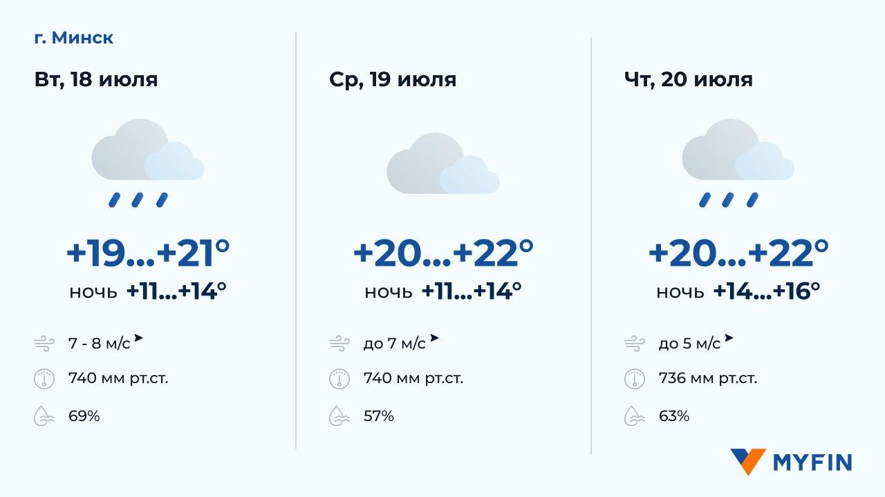 В ближайшие дни в Минске и регионах в среднем температура днем составит +20-24 градусов, ожидаются дожди. Подробнее смотрим в прогнозе погоды в столице и областных центрах республики на 3 дня.