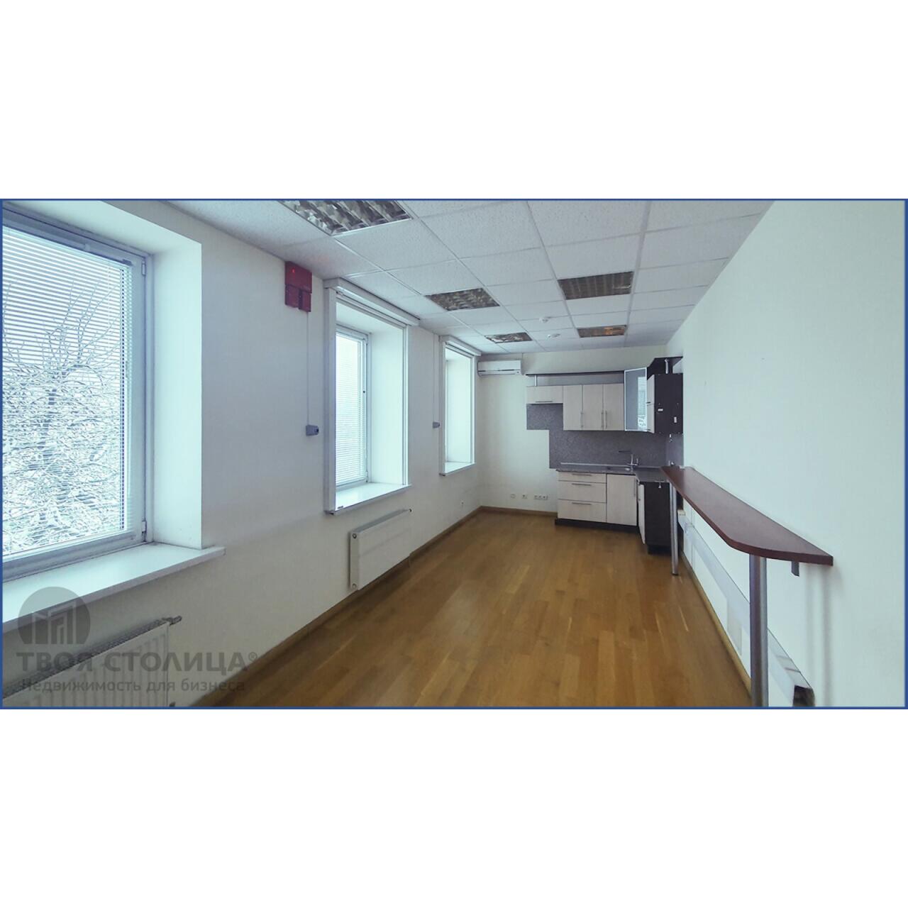 Офисные помещения кабинетной планировки с хорошим ремонтом общей площадью 368.3 кв.м. расположены на трех этажах здания. Офисы имеют естественное освещение. Каждый этаж оборудован санузлами. В цокольном этаже возможно организовать производственные помещения/ склад общей площадью 102 кв.м. На первом этаже организован пункт охраны.