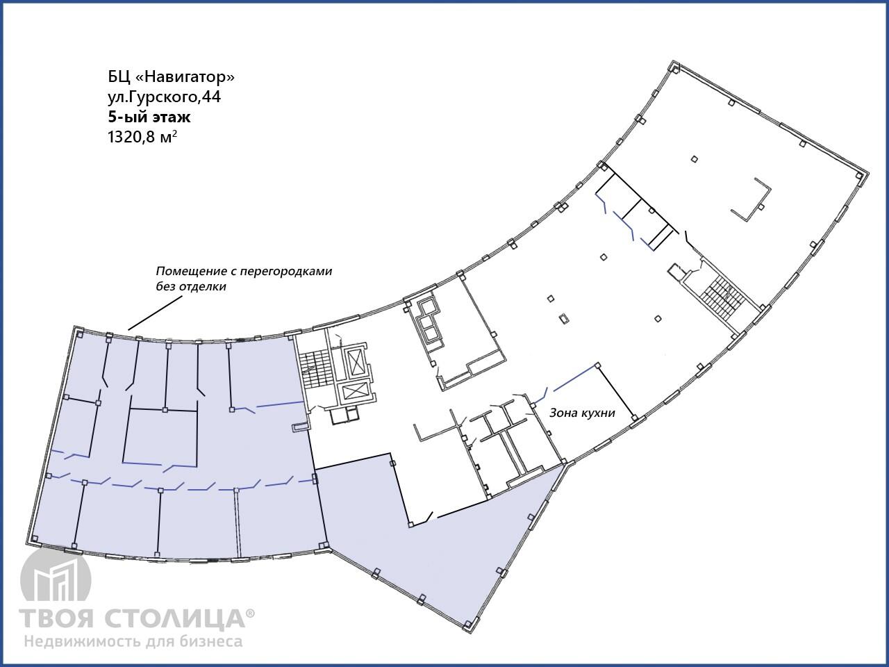 Уникальное предложение. Офисное помещение с евро ремонтом, общей площадью 1320,8 кв.м. Располагается в новом бизнес-центре "Навигатор", на пересечении улиц Гурского и Брыля.