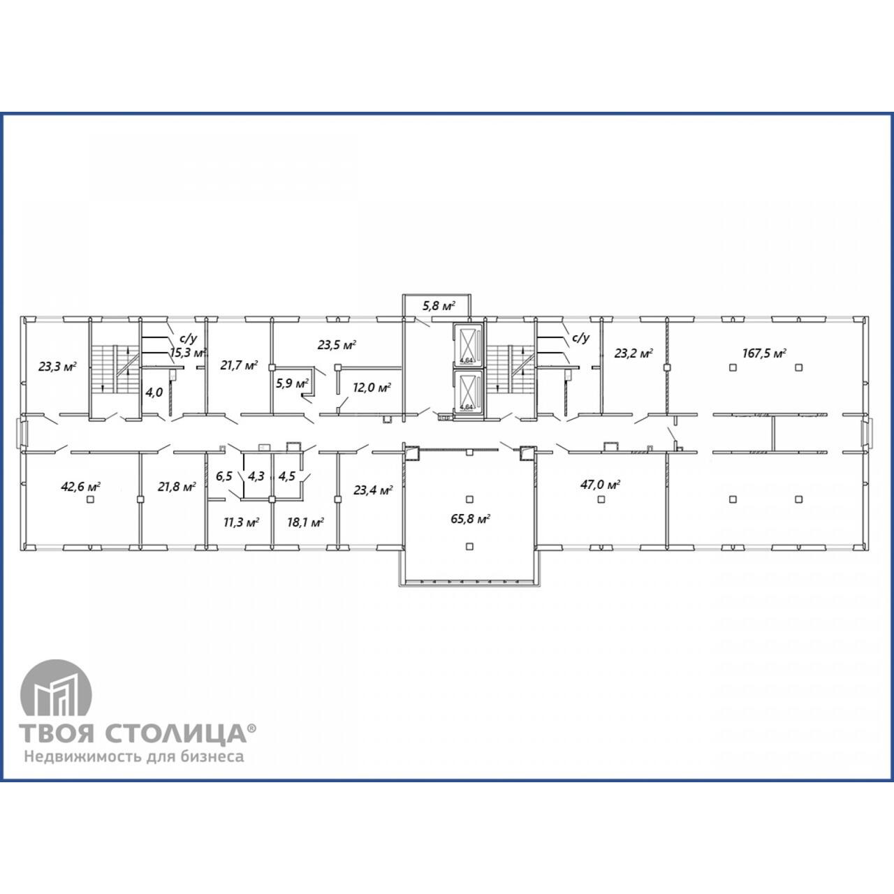 офисный блок 672.8кв.м на 5 этаже, представлен комбинированной планировкой: open space/ кабинеты.