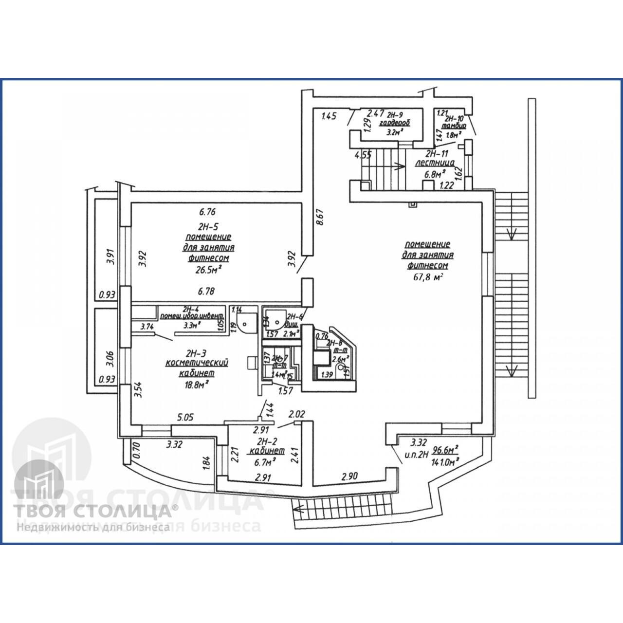 141 кв.м, в цокольном этаже жилого дома в районе многоквартирной жилой застройки. Помещение с двумя отдельными входами, тамбуром, 3-мя кабинетами, сан.узлом, душевой, раздевалкой, зеркала для тренировок на стенах.