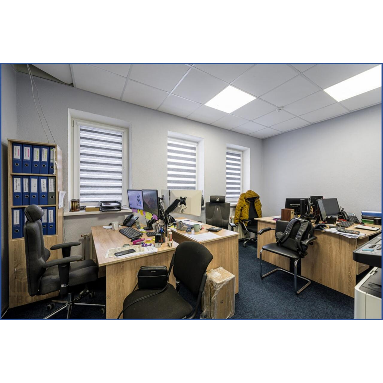 Продажа одноэтажного отдельно стоящего офисно-складского здания площадью 159 кв. м. в ЖК "Олимпик Парк" по адресу ул. Ратомская 48. Собственный сан/узел, душевая, кухня. Теплый склад 63.6 кв.м. с воротами роллетного типа с заездом с земли.
