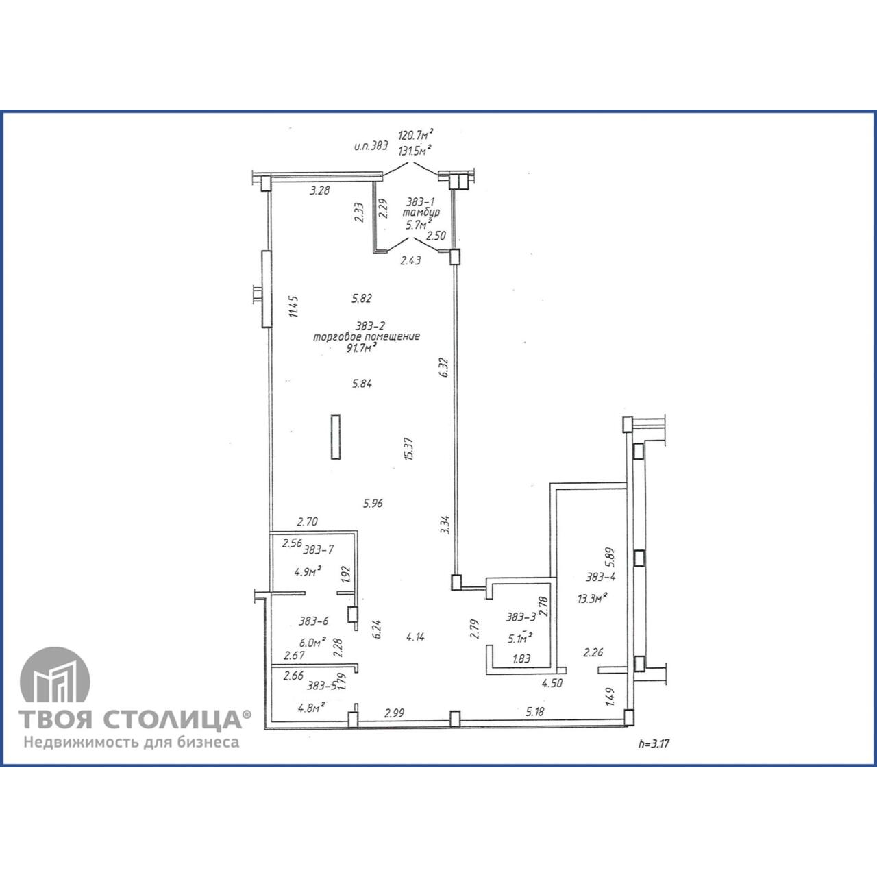 Планировка: просторный торговый зал (91 м2), 4 помещения, выделенных под складское хранение, собственный санузел.