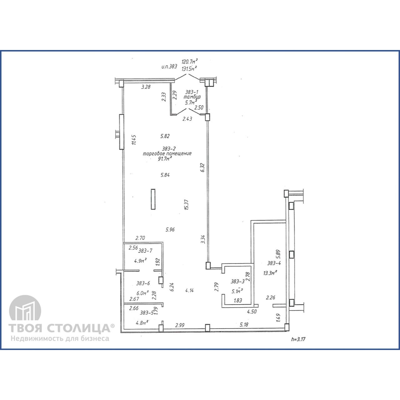 Планировка: просторный торговый зал (91 м2), 4 помещения, выделенных под складское хранение, собственный санузел.