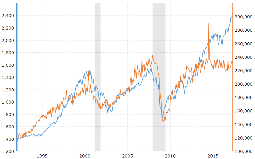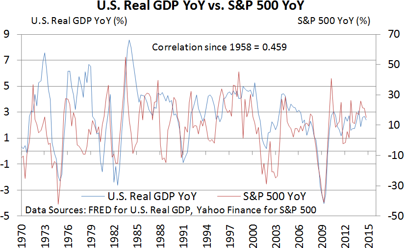 Аналитиков давно волнует вопрос корреляции индекса S&P 500 с макроэкономическими показателями, например - с ВВП США.