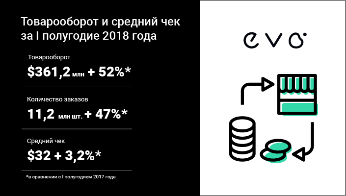 EVO – крупнейшая украинская продуктовая IT-компания, семья маркетплейсов, где сотни тысяч предпринимателей продают свои товары и оказывают услуги пользователей. EVO — один из лидеров рынка электронной коммерции Украины. Работает 10 лет, опережая темпы роста рынка минимум в 2 раза. В компании разрабатывают и продают готовые решения и ежегодно выводят на рынок новые востребованные продукты.