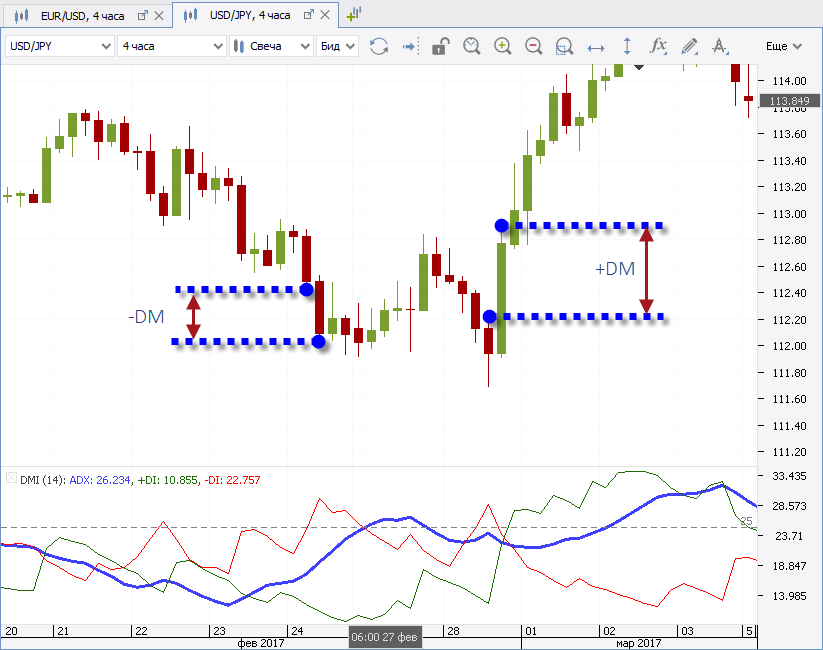 Рис. 3. Как получить +DM и -DM.