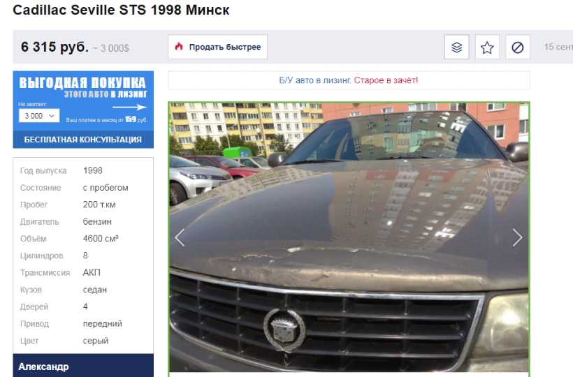 Cadillac Seville STS 1998 года находится в Минске и продается за 6 315 рублей или $3 000.