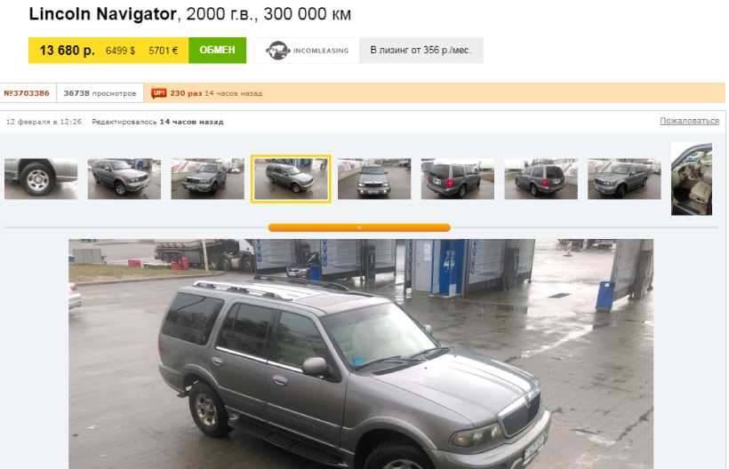 Внедорожник Lincoln Navigator 2000 года продается за 13 680 рублей, или $6 499.
