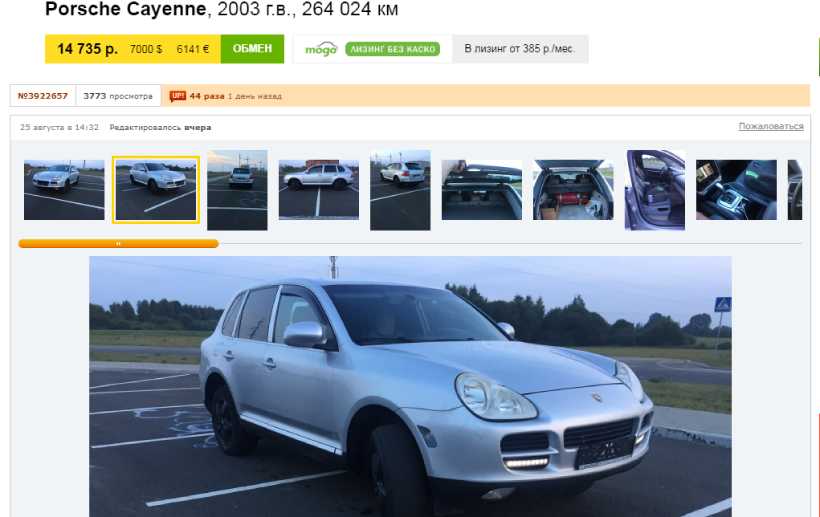 Серебристый внедорожник Porsche Cayenne 2003 года продается за 14 735 рублей, или $7 000.