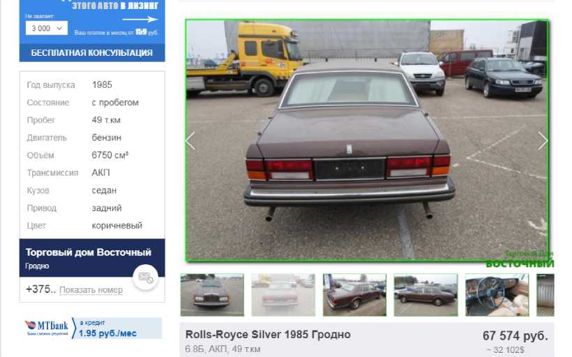 Rolls-Royce Silver 1985 года продается в Гродно. Продавец – «Торговый Дом «Восточный» –  реализует конфискованный автотранспорт в форме торгов.