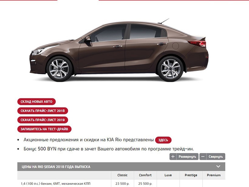 Именно столько, по информации сайта дилера, в долларовом эквиваленте стоит Kia Rio 2018 года выпуска. В рублях цена автомобиля – 23 500.