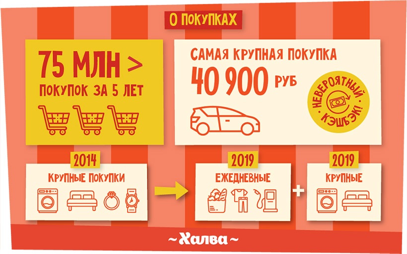 Несомненно, именно так и выглядит успех. И особенно приятно видеть такие цифры в первый юбилей Халвы. Присоединяйтесь к нашему празднику и получайте особые условия для покупок в рассрочку: на все покупки в апреле на сумму от 200 рублей вы получаете до 5 месяцев бонусной рассрочки – по одному дополнительному месяцу за каждый год с Халвой. Для новых карт, оформленных с 1 по 30 апреля, действуют скидка 50% на 3 года обслуживания карты и 1 дополнительный месяц рассрочки бонусом на крупные покупки в апреле и мае 2019.
