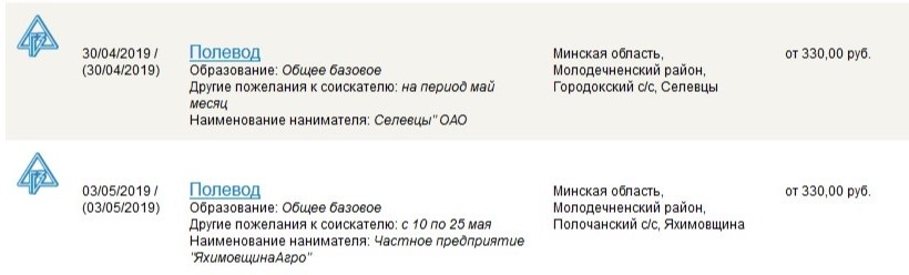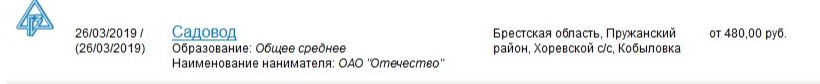Больше предлагают, к примеру, за работу садовода – 480 рублей (место работы Брестская область, Пружанский район, Хоревской c/c, Кобыловка).
