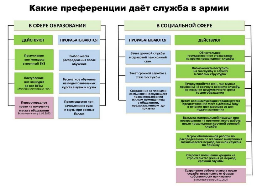 «В настоящий момент Минобороны инициирован ряд социальных гарантий для военнослужащих, прошедших срочную службу. Большинство из них – в сфере образования», – сообщает пресс-служба ведомства.